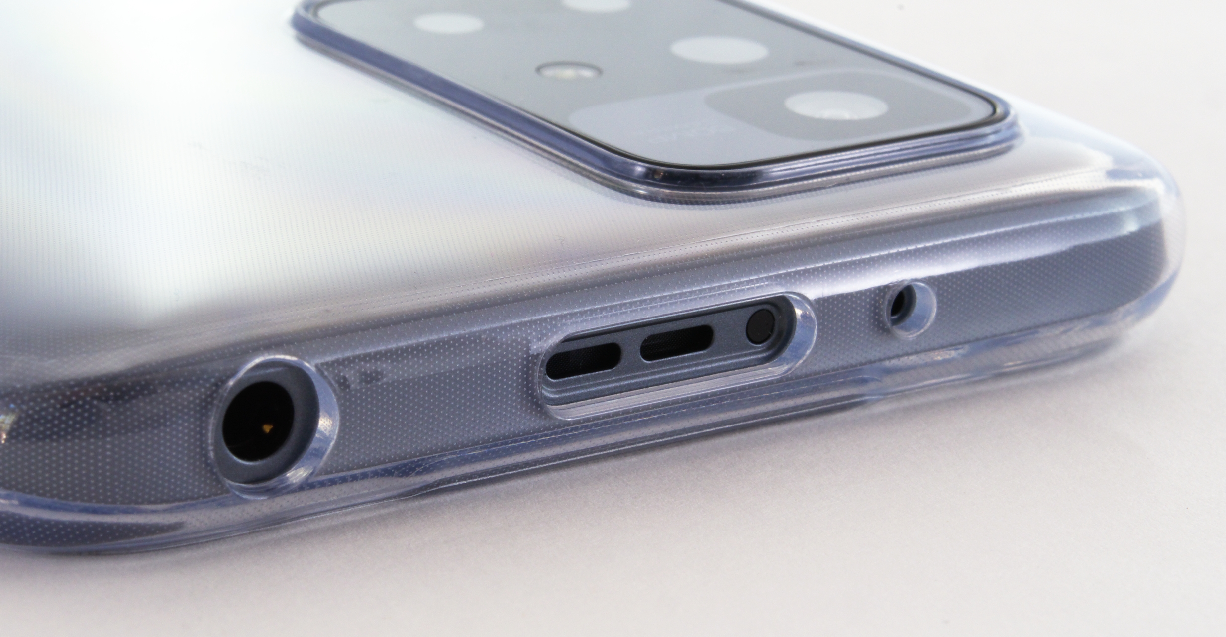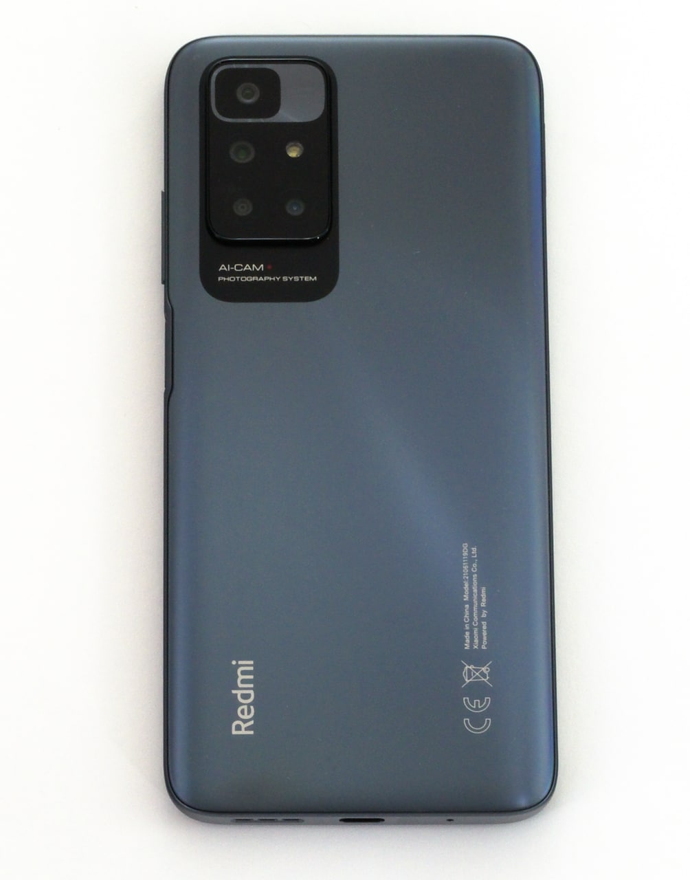 Seitlich am Redmi 10 sind die üblichen Funktions- und Bedienelemente untergebracht, etwa die Haupt-Lautsprecher, eine Klinkenbuchse, eine Lautstärkewippe und der Power-Button, der bei dem Smartphone zugleich als Fingerabdruck-Sensor dient. Auf der Rückseite ist ein solcher somit überflüssig: Dort befindet sich nur das um etwa zwei Millimeter herausragend Kameramodul, das aus vier Kameras und einem LED-Licht besteht.