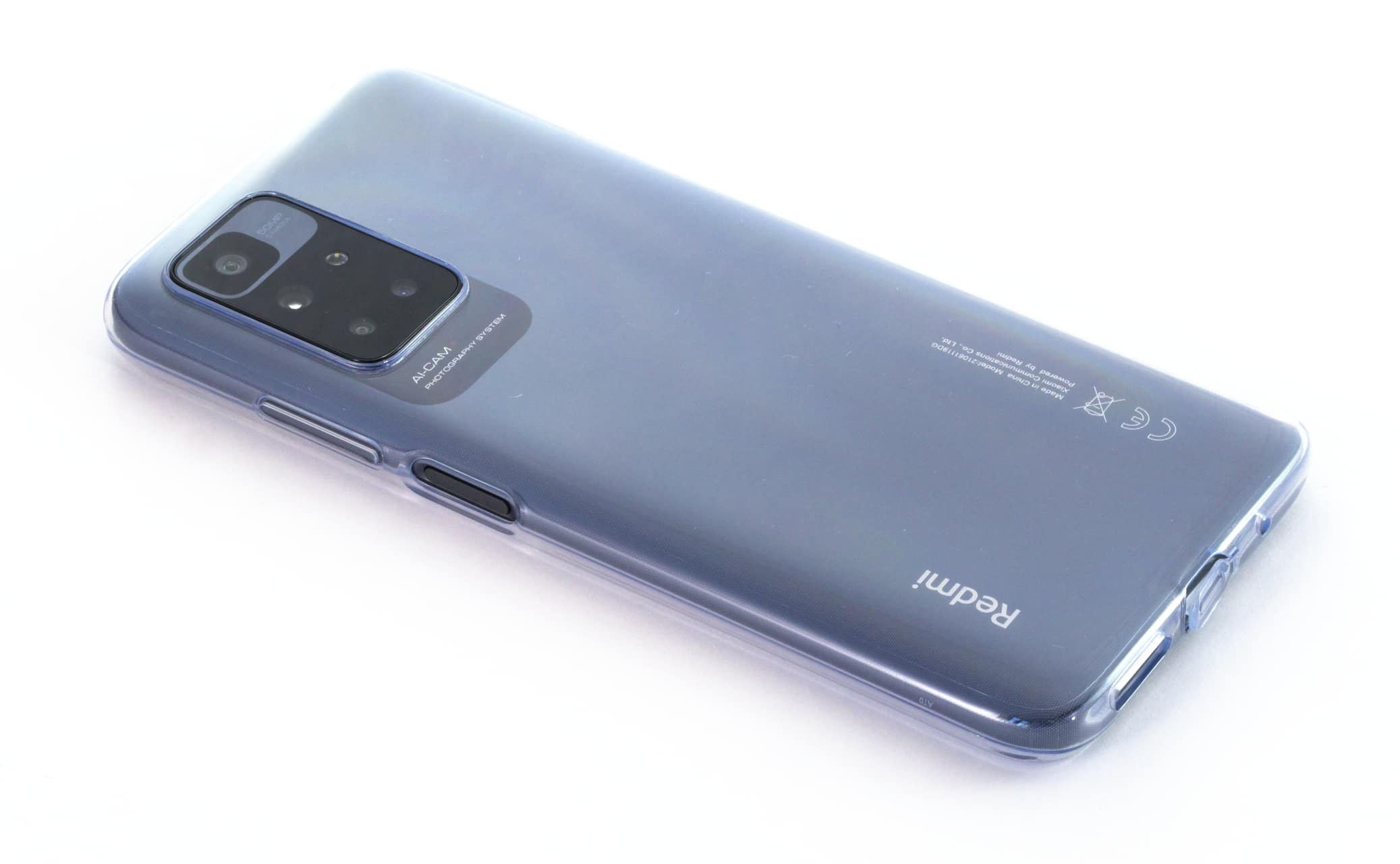 Auch ergonomisch schlägt sich das Redmi 10 gut: Der Kunststoff an der Rückseite fühlt sich angenehm an, und Gewicht und Dicke des Geräts passen zur Displaygröße. Auch mit der beiliegenden Hülle liegt das Redmi 10 gut in der Hand: Die glatte Silikon-Oberfläche gibt genügend Halt und vergrößert das Smartphone nicht allzu sehr.