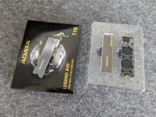 Während des Tests erreichten wir bei einer Raumtemperatur von 25°C ohne den mitgelieferten Kühlkörper und unter Last maximal 70°C. Dies liegt gerade noch innerhalb der von Adata angegebenen Betriebstemperaturen, zu Performanceeinbrüchen kam es nicht. Der mitgelieferte Kühlkörper soll die Temperatur um 15% senken, was anhand unserer Erfahrungen mit ähnlichen Kühlkörpern auch durchaus realistisch ist.