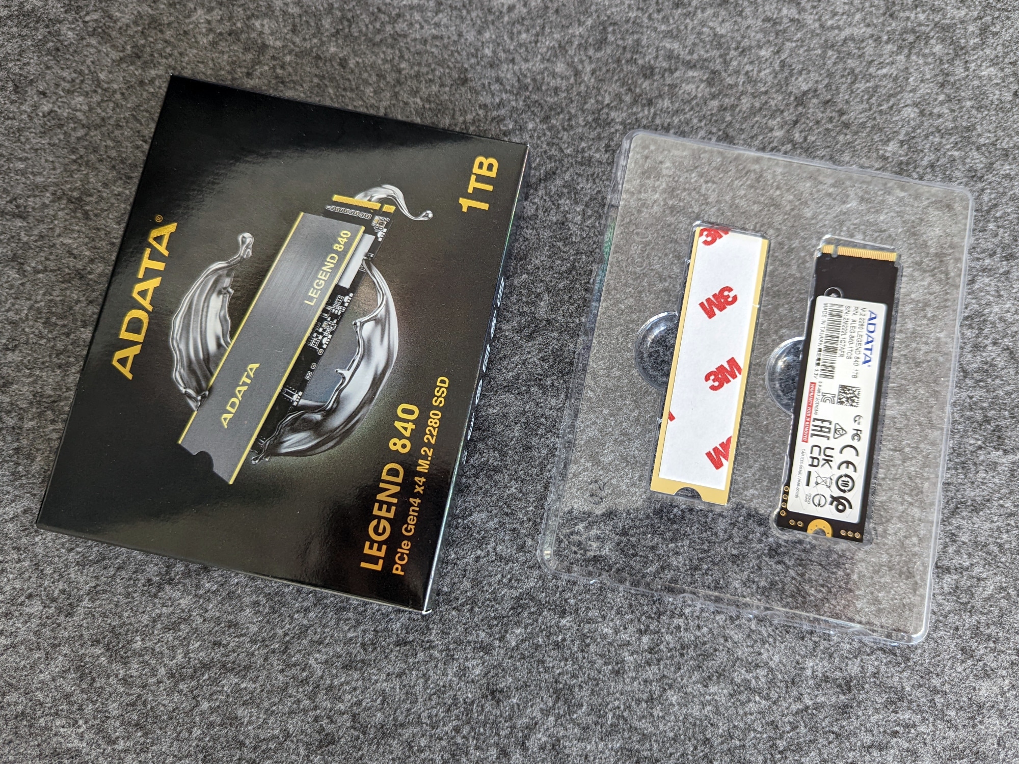 Die M.2-SSD ist auf Fotos stets mit Kühlkörper zu sehen, im Karton befinden sich SSD und Kühlkörper allerdings voneinander getrennt. Wer den mitgelieferten Kühlkörper verwenden möchte, muss diesen nur auf die Oberseite der SSD kleben, ein Wärmeleitpad ist bereits angebracht. Aufgrund der geringen Höhe des Kühlkörpers und der Performance eignet sich die Legend 840 nicht nur für den Einsatz im PC, sondern auch für die PlayStation 5.