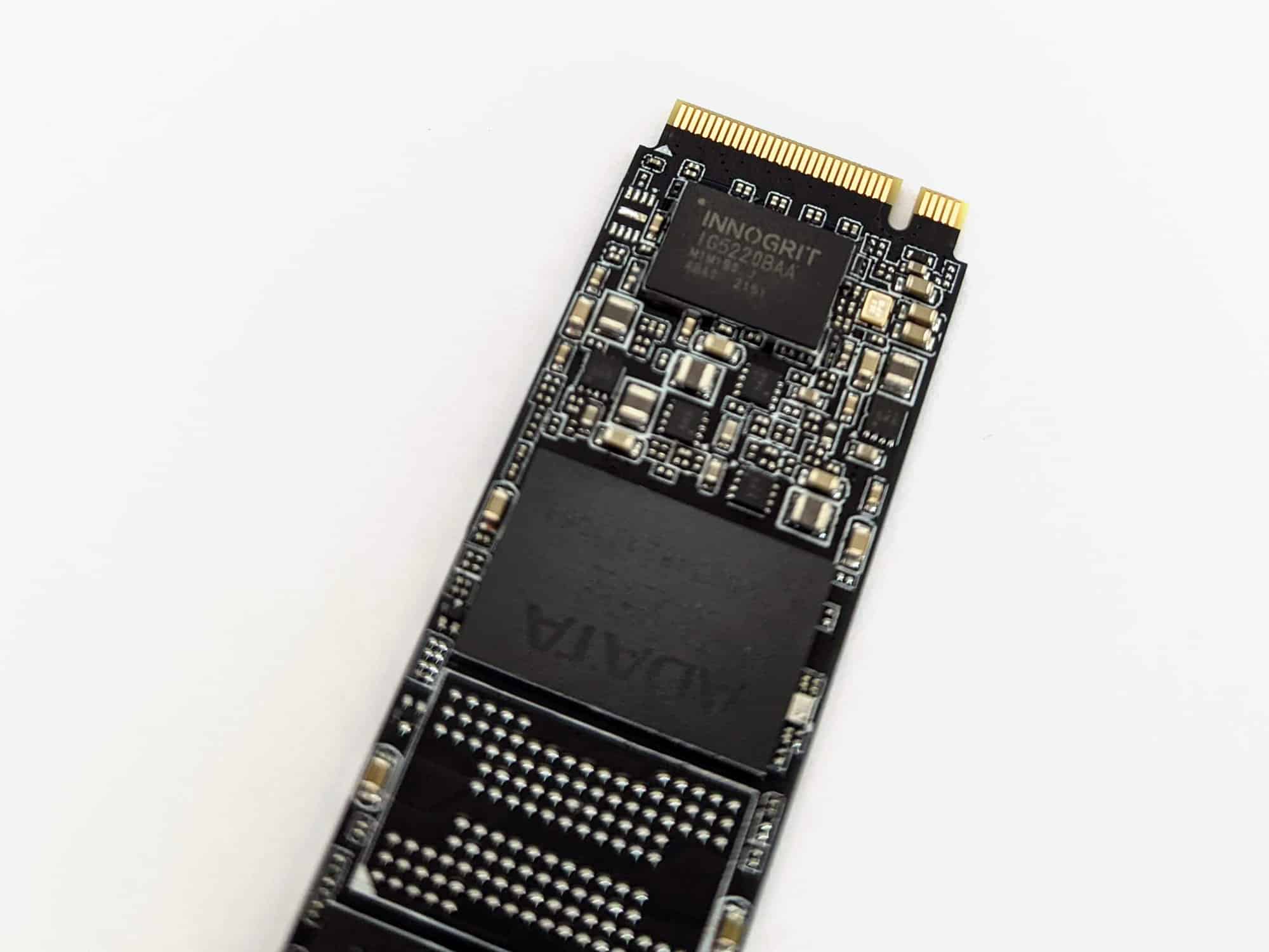 Wie anfangs erwähnt ist der verbaute Controller eine Besonderheit der SSD. Während der Großteil der Konkurrenten überwiegend auf die Controller der Hersteller Phison oder auch Silicon Motion setzt, nutzt Adata den Innogrit IG5220, auch als Rainier Q bekannt. Mit 7,5 x 11 mm ist der Controller besonders klein und zudem sehr kosten- und energiesparend. Als Speicher kommt Microns aktueller 3D-NAND TLC (Micron B47R, 176 Layer) zum Einsatz, auf einen DRAM-Cache müssen wir verzichten. Die Garantiedauer liegt bei 5 Jahren bzw. bis zu einer Schreibleistung von, für diese Preisklasse sehr guten, 650 TB.