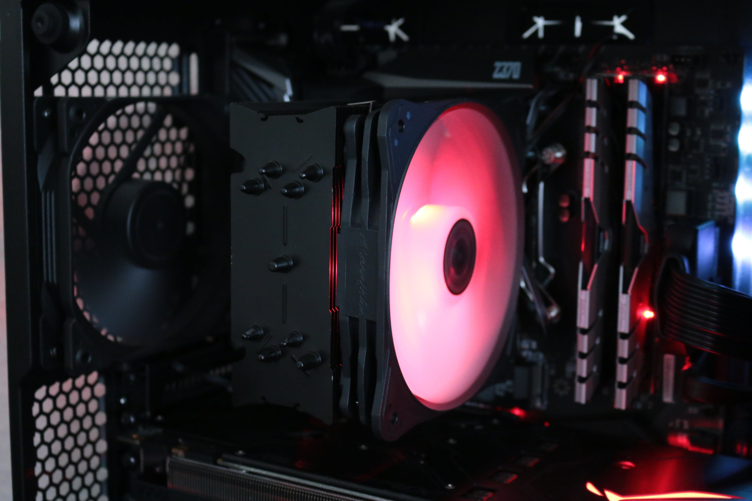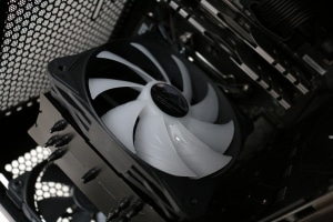Einmal eingerichtet und angeschlossen, bietet der Lüfter zahlreiche Beleuchtungsmodi. Dabei lassen sich neben der Helligkeit und Geschwindigkeit auch Effekte wie „Blinken“ und „Sanfter Übergang“ mit statischen Farben oder Farbwechsel wählen. Eine komplett statische Beleuchtung in Wunschfarbe ist natürlich ebenfalls möglich. Bei der Installation des RGB-Kabels sollte allerdings dringend nach Anleitung vorgegangen werden, um eine falsche Montage zu vermeiden. Kommt es hier zu Fehlern, kann tatsächlich das Mainboard Schaden davon tragen.