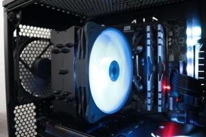 Wie der Name es bereits vermuten lässt, kommt der Kühler komplett in Schwarz daher. Viele Systeme verfolgen ein bestimmtes Farbschema, wodurch sich vernickelte oder silberfarbene Kühler optisch nicht besonders gut integrieren lassen. Das Schwarz des Ben Nevis Advanced RGB Black hingegen bietet ideale Voraussetzungen für optisch stimmige PC-Systeme. Für einen Preis von Preis nicht verfügbar * lässt die Verarbeitung zudem keine Wünsche mehr offen und macht einen guten Eindruck. Scharfe Kanten oder unsaubere Ecken sucht man vergebens. Einzig die Anschlüsse der Kabel könnten ein wenig leichtgängiger miteinander zu verbinden sein.