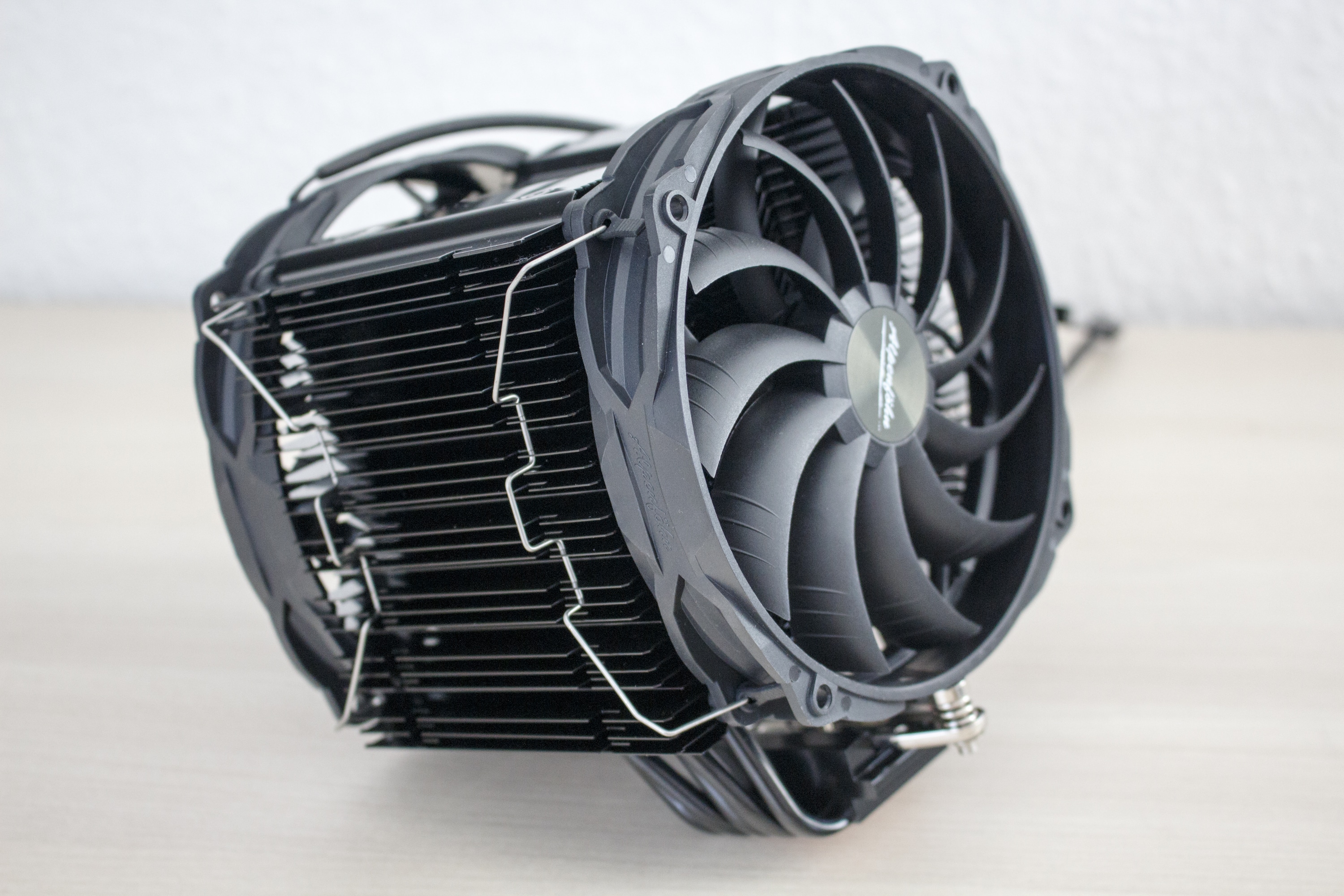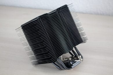 Wie auf den Bildern ganz gut zu erkennen ist, wirkt der Brocken 3 Black Edition mit beiden installierten Lüftern sehr massiv und bringt mit einem Gesamtgewicht von ca. 1 kg ein ordentliches Gewicht auf die Waage. Mit einer Höhe von 165 Millimetern hat der CPU-Kühler zudem eine ordentliche Größe, die allerdings für das ein oder andere Gehäuse schon zu groß sein könnte.