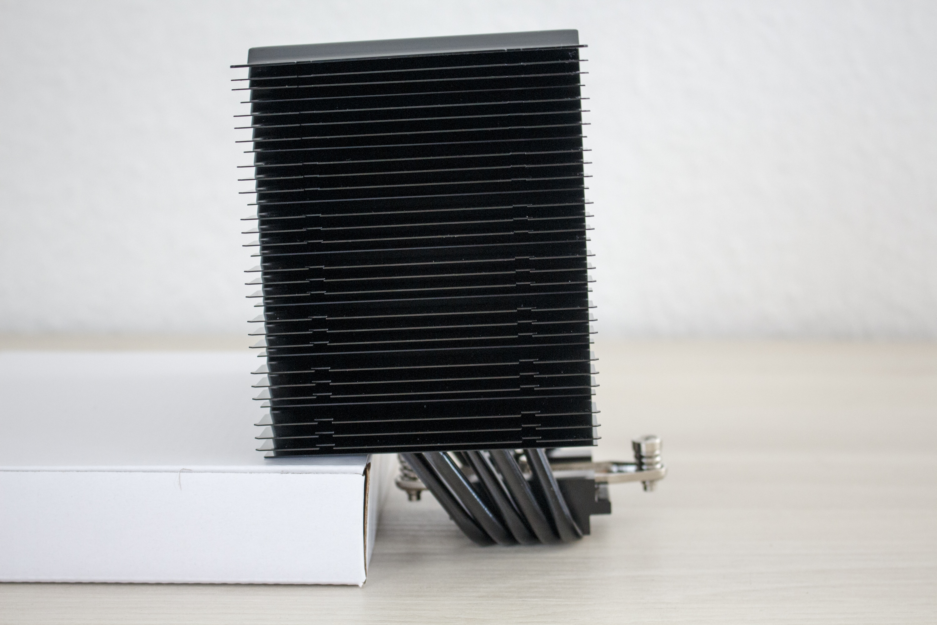 Wie man von einem Alpenföhn-Produkt erwarten kann, ist die Verarbeitung sehr gut. Der Kühlkörper weißt keine verbogenen Finnen auf, es gibt keine scharfen Kanten und auch die Eloxierung aller Bauteile ist sauber.