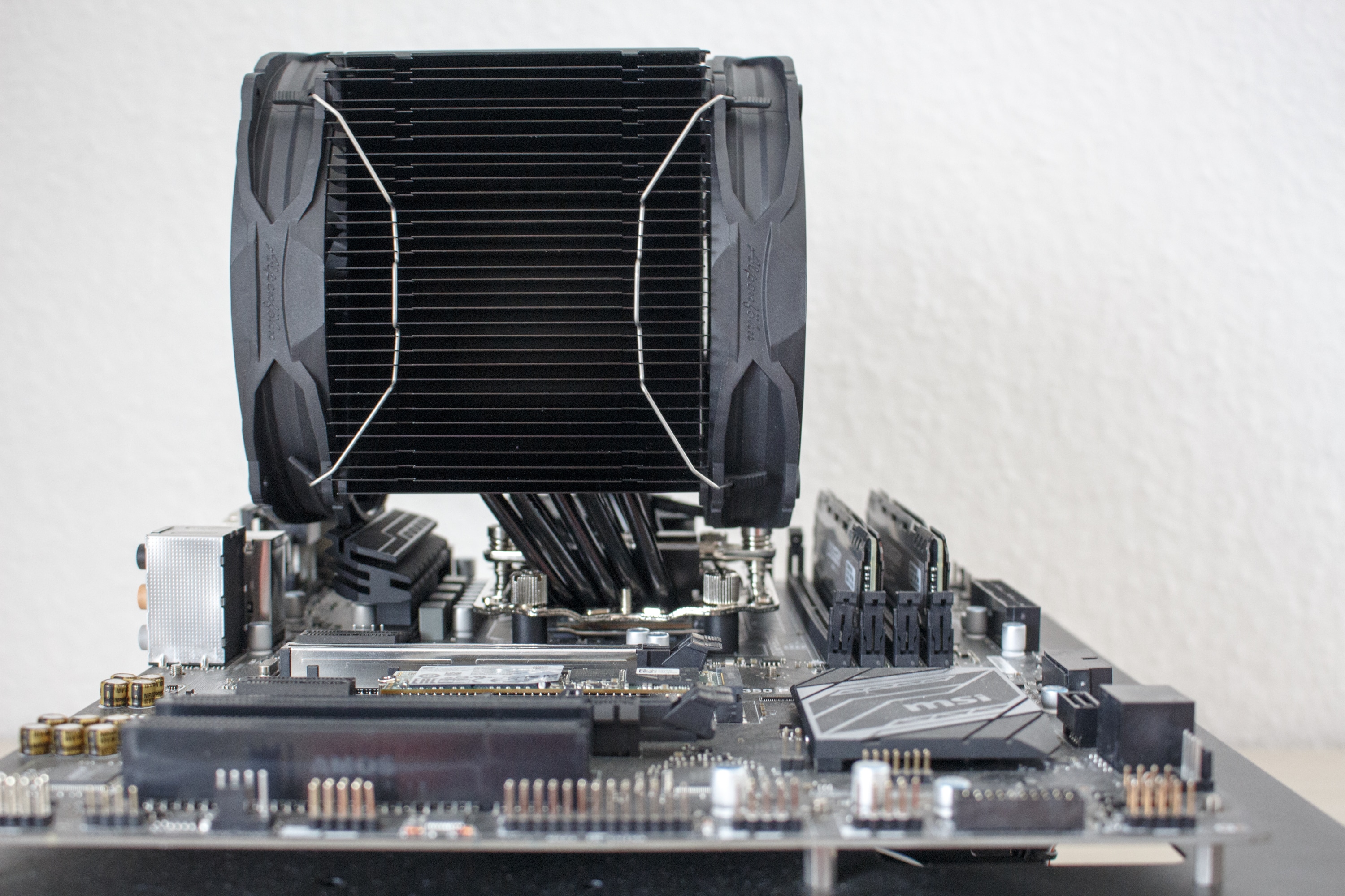 Einen kleinen negativen Punkt haben wir aber auch gefunden. So könnte es vor allem bei Mainboards bei denen die Grafikkarte im obersten Slot steckt, zu Problemen bei der Montage kommen. Damit ist der Brocken 3 aber in dieser Kühler-Kategorie nicht alleine. Auch bei der Konkurrenz von be quiet!, Noctua usw. können je Mainboard Komplikationen auftreten.