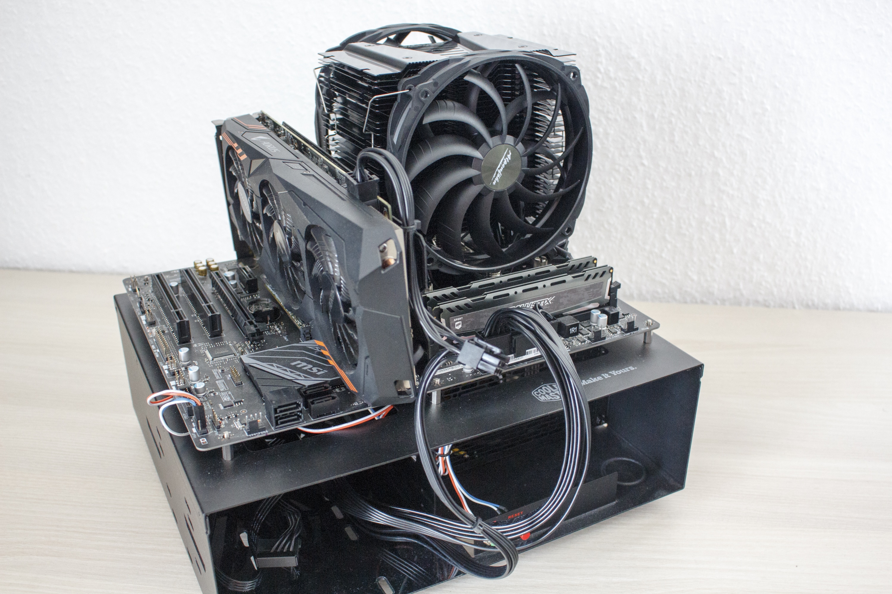 Für das Review kommt ein Testsystem auf einem Benchtable zum Einsatz. Dadurch können wir Störfaktoren wie zum Beispiel einen Hitzestau im Gehäuse ausschließen. Das Testsystem besteht aus den folgenden Komponenten.