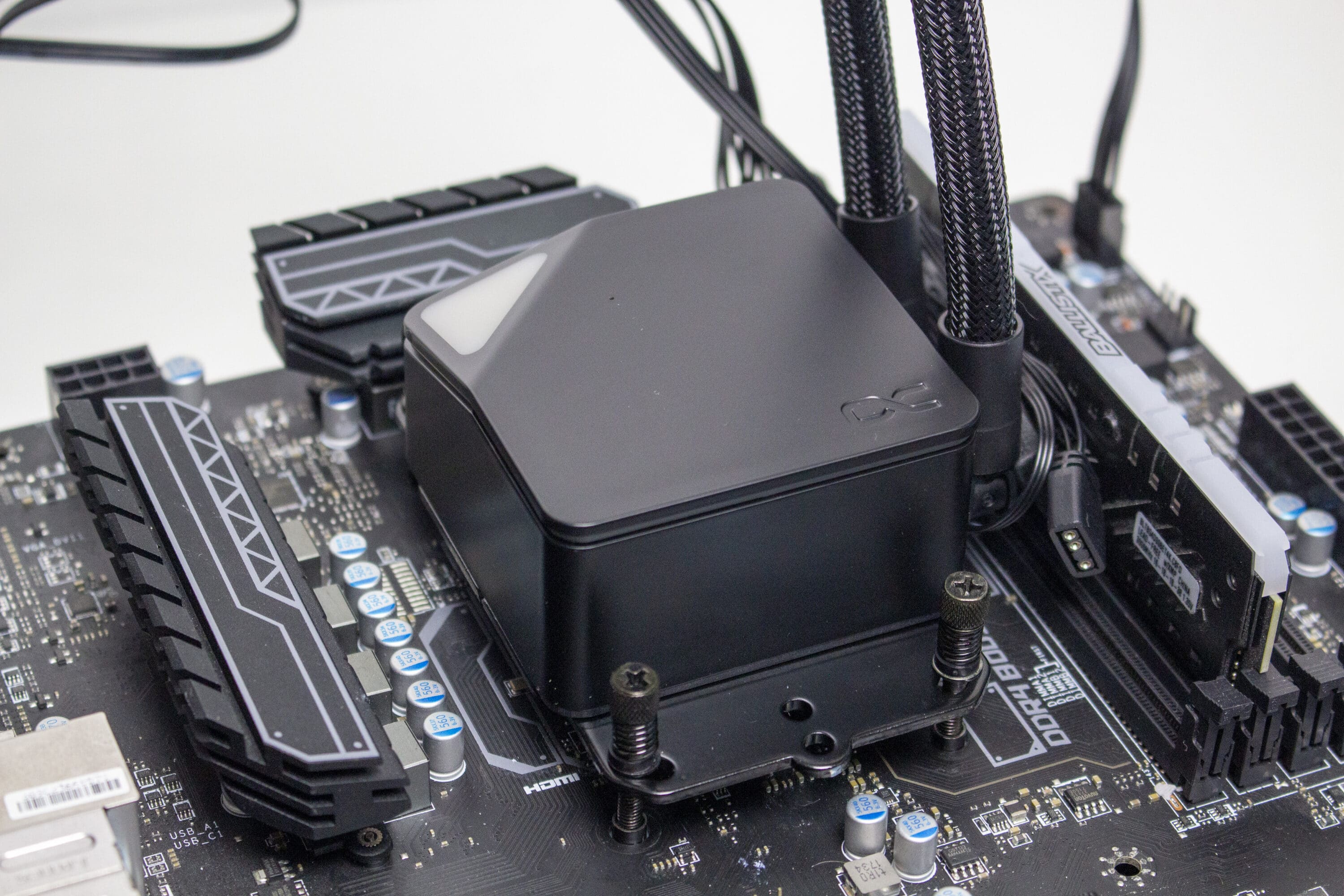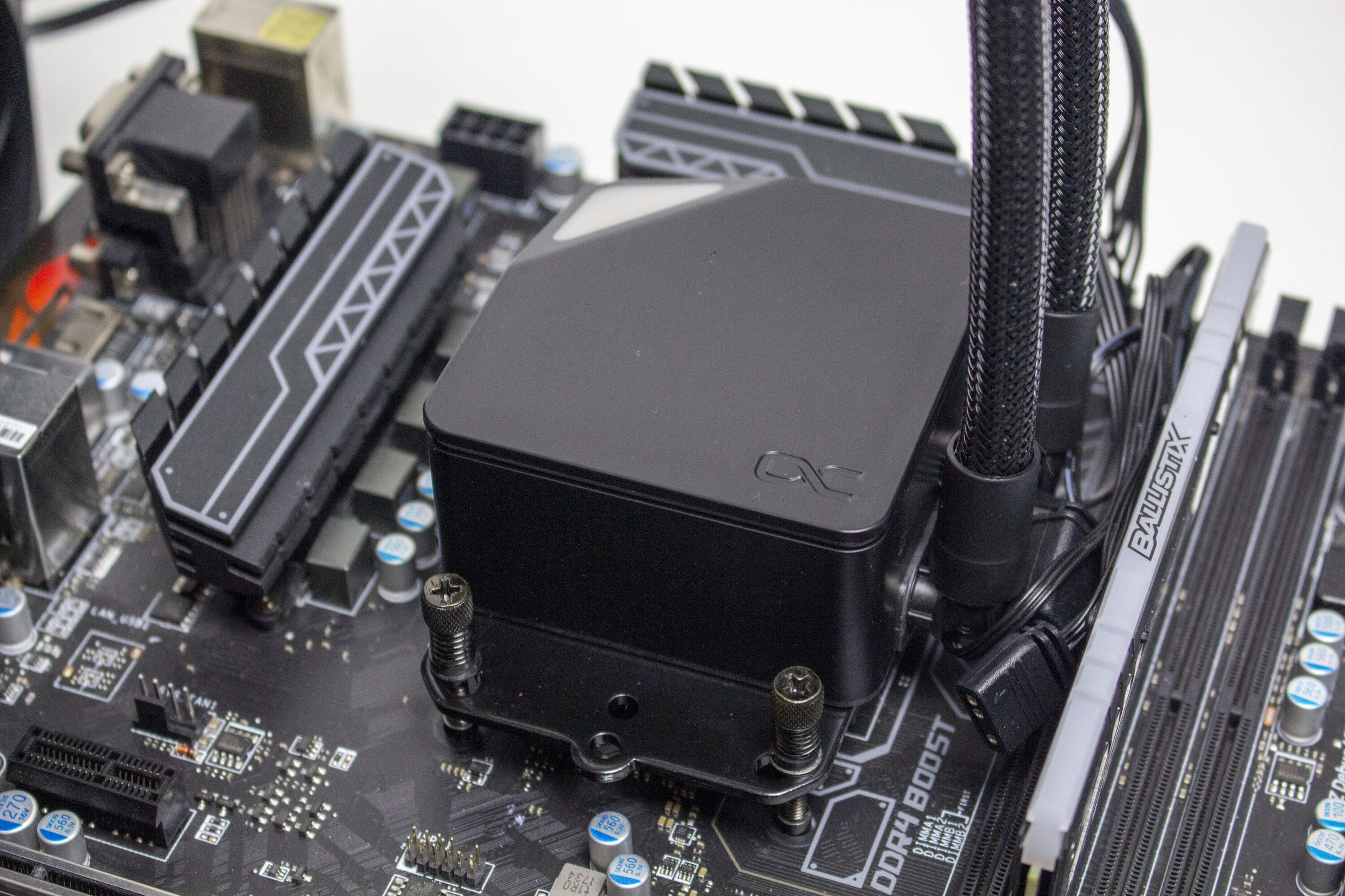 Letztere ist aber auch gleichzeitig ein großer Nachteil. Durch die erzeugte Lautstärke ist die Pumpe selbst bei reduzierter Umdrehungszahl nichts für Silent-Systeme. Fast immer geht ein gewisses Surren und Brummen von der Pumpe aus. Außerdem empfinden wir das Montagesystem, im Vergleich zu anderen AiO-Wasserkühlungen, als etwas zu fummelig.