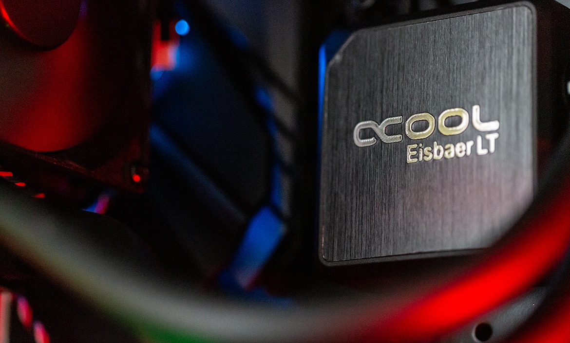 Die Alphacool Eisbaer LT92 CPU AIO zeigt sich als flexibles Teil fu00fcr die Montage in alten oder kleinen Gehu00e4usen und u00fcbertrifft - insbesondere mit den richtigen Lu00fcftern - durchaus die Leistung von Werksku00fchlern.
