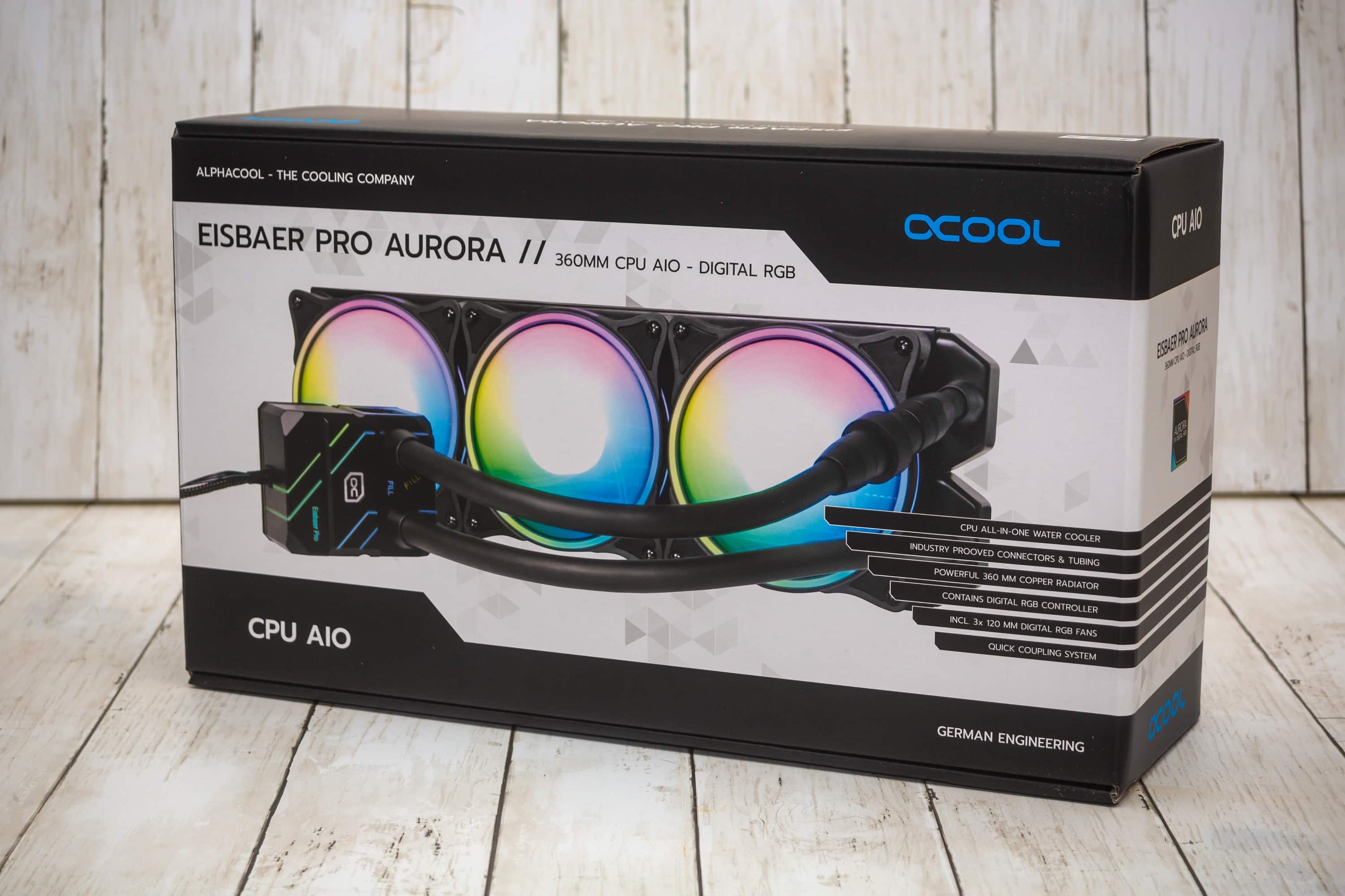 Die Alphacool Eisbaer Pro Aurora 360 CPU AIO bietet Custom-Parts und eine hohe Kompatibilitu00e4t zu grou00dfen Sockeln zum humanen Preis, liegt leistungsmu00e4u00dfig im Bereich einer regulu00e4ren AIO, ist allerdings etwas laut.