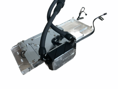 Bestückt wurde die Eiswolf 2 mit einer leistungsstarken 12V-Pumpe, welche sich direkt am Kühlkörper befindet. Das Gehäuse der Pumpe ist weitestgehend in Schwarz gehalten. Durch eine metallische Applikation wird die Pumpe optisch vom Kühlkörper getrennt. An der Frontseite des Pumpengehäuses wurde je nach Modell der Grafikkartenhersteller mit eingebracht. Das Logo ist herstellerabhängig Rot oder Grün beleuchtet. Die Farbe der Beleuchtung ist fest und lässt sich nicht ändern. Der Schriftzug „Eiswolf“ ist unbeleuchtet und daher eher unauffällig.