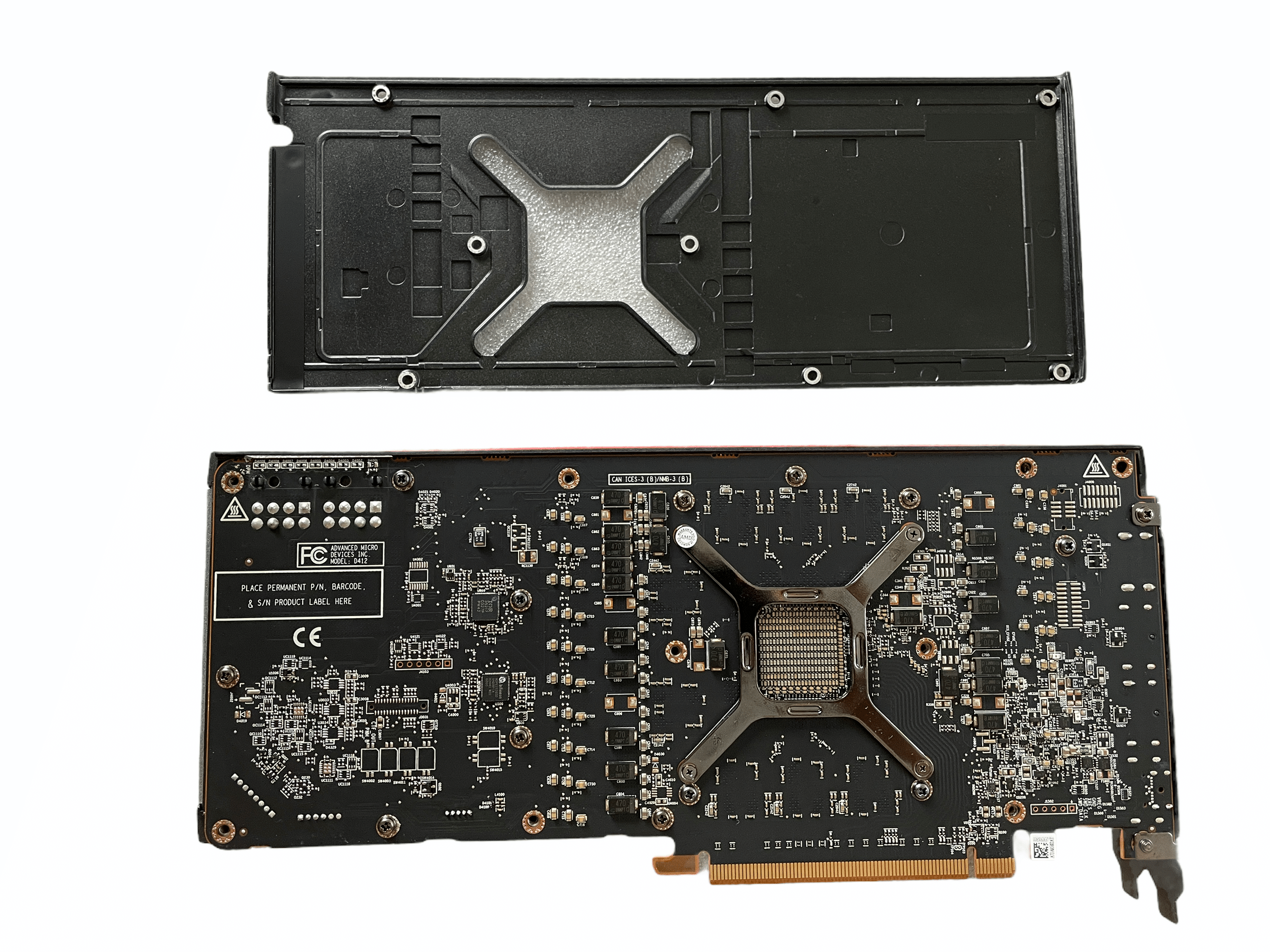 Die ersten Schritte für den Umbau gelten der Vorbereitung und Demontage des Grafikkartengehäuses. Begonnen wird damit, alle Schrauben auf der Rückseite (Backplate) der GPU zu lösen. Zusätzlich ist es notwendig die Schrauben unterhalb der Display-Anschlüsse zu lösen, da sich sonst das Gehäuse nicht entfernen lässt.