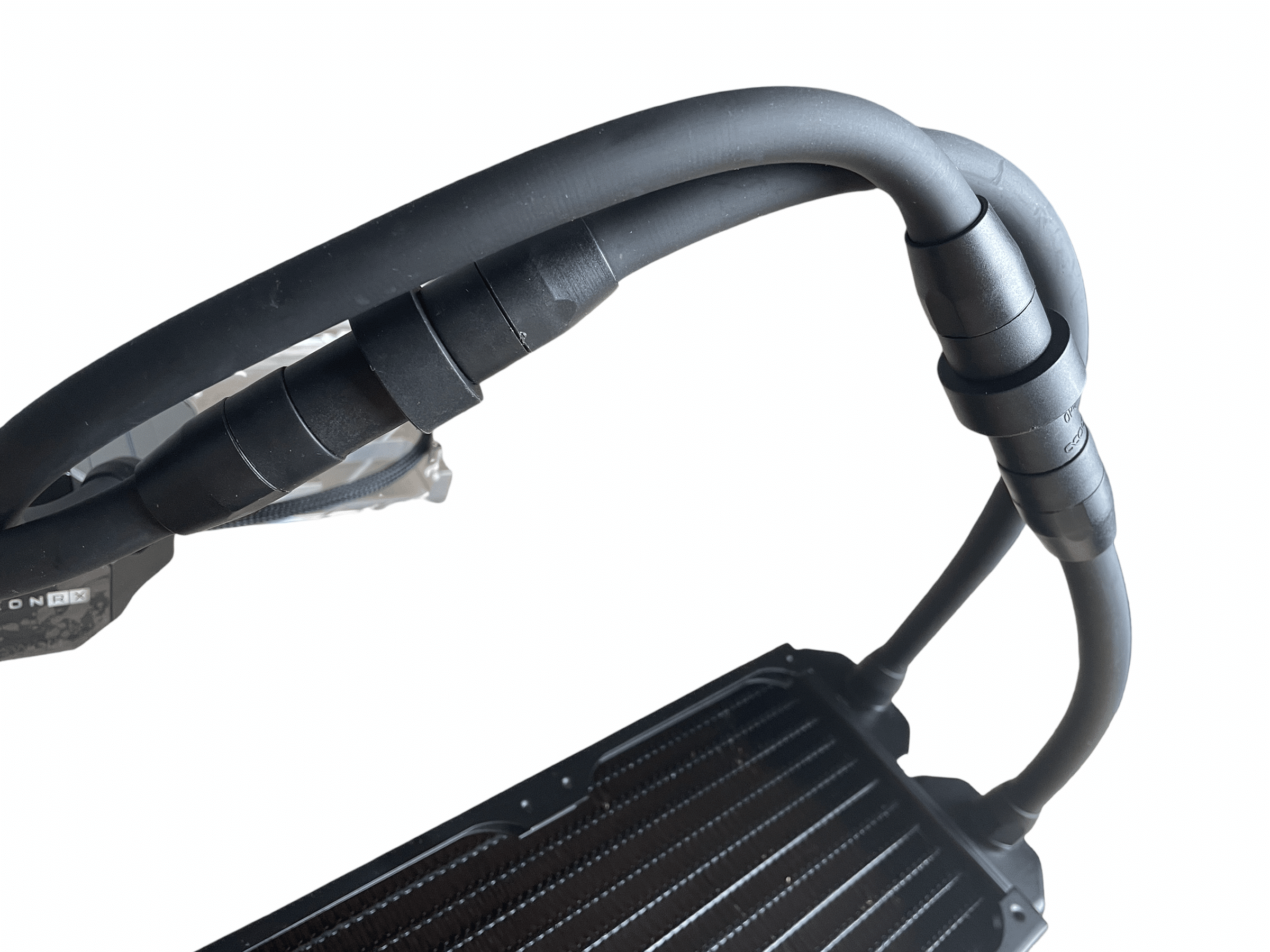 Die Wahl der Materialien und die Umsetzung der einzelnen Bauteile hat uns überzeugt. Gerade der Kühlkörper und die Backplate machen einen sehr wertigen Eindruck. Die Schläuche sind aus TPV (einem speziellen Kunststoffgemisch) gefertigt und machen dank der matten Oberfläche einen wertigen Eindruck, dennoch muss man beim Verlegen aufpassen, da die Schläuche sehr schnell abknicken.