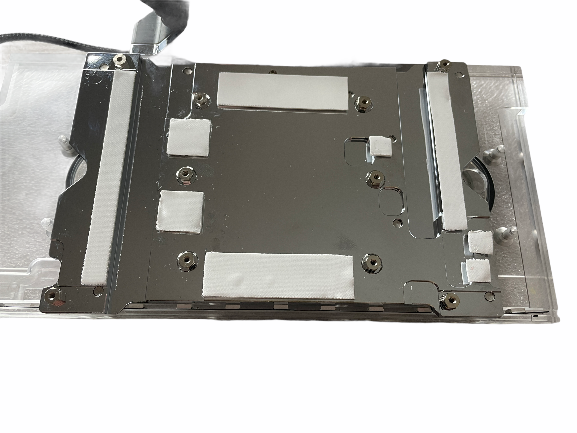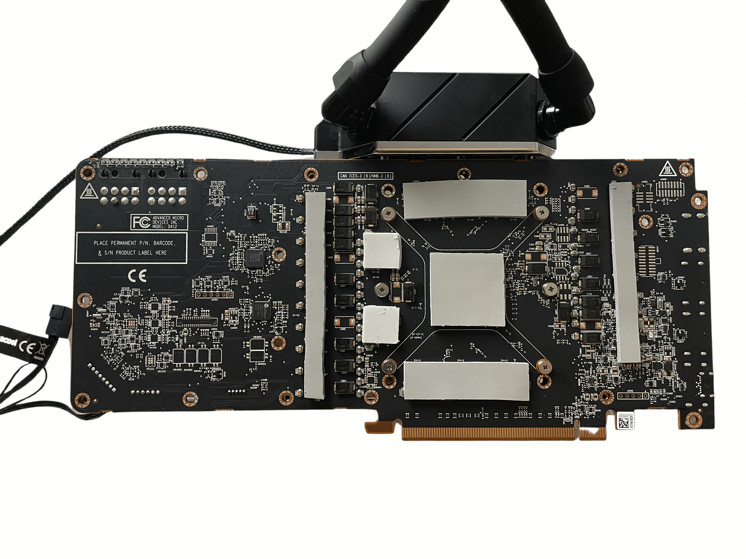 Im nächsten Schritt werden die 3-mm-Pads auf der Rückseite der GPU angebracht. Die Positionen können ebenfalls der Montageanleitung entnommen werden. Anschließend wird die enthaltene Backplate aufgelegt und mit der Kühleinheit verschraubt. Damit ist der Umbau abgeschlossen und wir sind bereit für unseren Leistungstest.