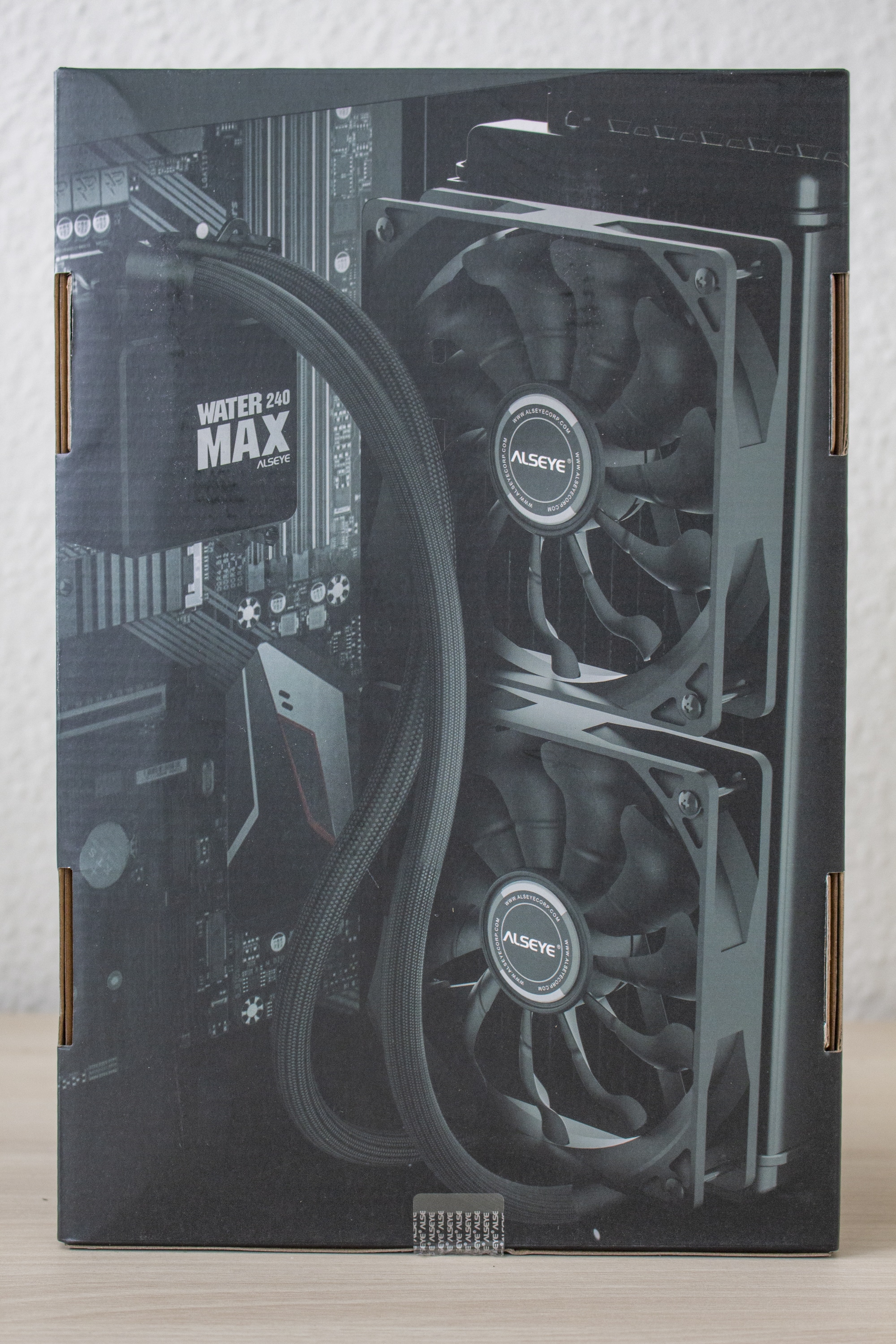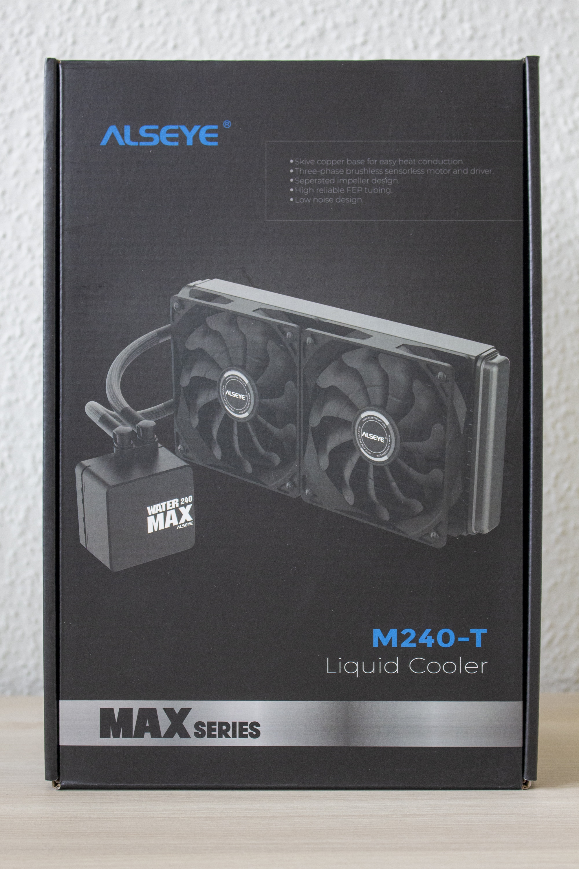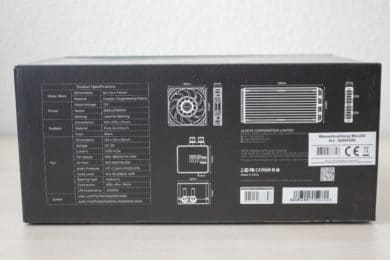 Die ALSEYE MAX 240 kommt in einem einem schwarzen Karton aus Pappe. Neben Produktbildern und einer Auflistung der Key-Features, enthält die Verpackung auch alle technischen Informationen. Alle Angaben sind in englischer Sprache verfasst.
