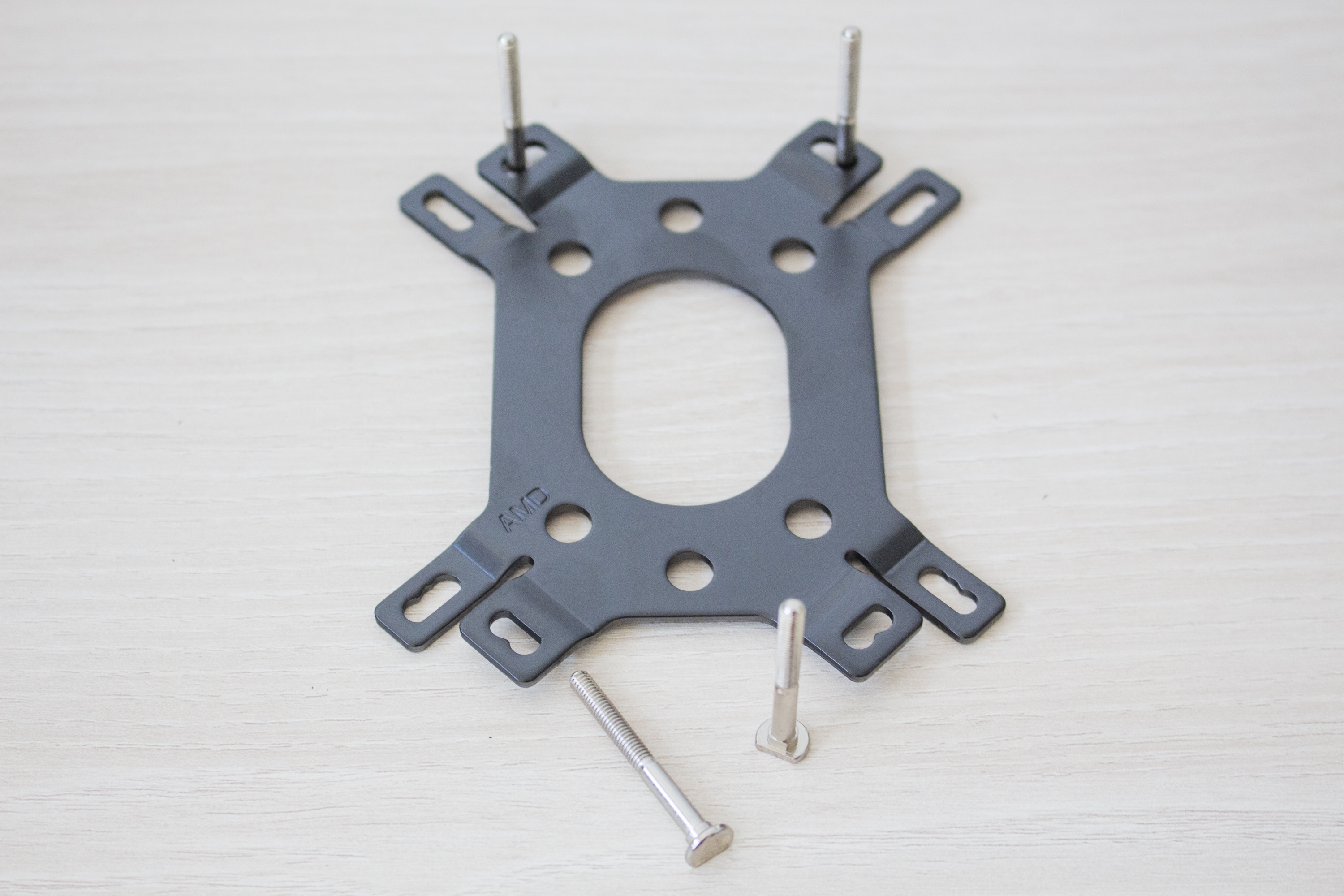 Die Montage der Wasserkühlung bei unserem Testsystem mit AM4-Sockel war schnell erledigt. Zuerst muss der Radiator inklusive der Lüfter mit dem Gehäuse verbunden werden. Dieser Schritt fällt, aufgrund der Verwendung eines Benchtables, in diesem Fall weg. Anschließend muss die Pumpe für die Montage vorbereitet werden. Dazu mussten einfach nur die zwei Haltebügel angesteckt werden. Da die M240-T beim AMD-Sockel auf eine eigene Backplate setzt, muss das AMD-Rentetionmodul komplett entfernt werden.