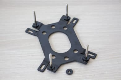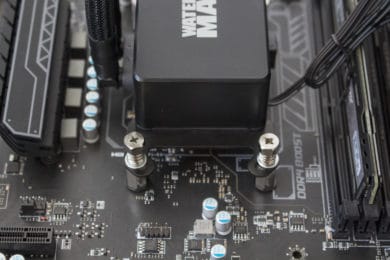 Die Montage des Kühlers war schnell erledigt. Das Montage-System ist solide und gut durchdacht. Durch die Backplate aus Metall und die federgelagerten Muttern hält die Konstruktion bombenfest, ohne dass es gleichzeitig die Gefahr von einem zu hohen Anpressdruck gibt.
