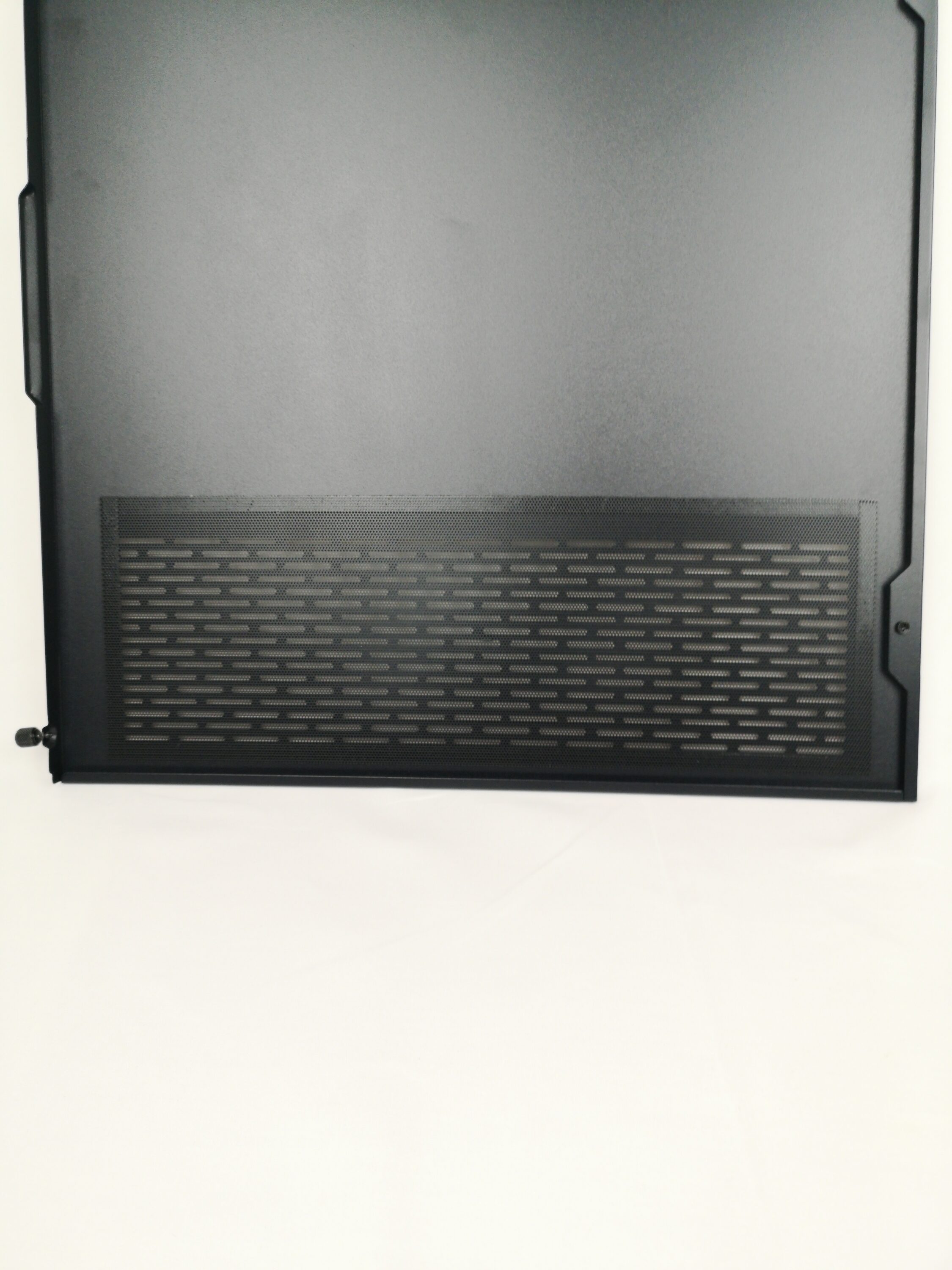 Am rechten Seitenteil wurde im unteren Bereich ein kleines Feld mit einer Perforierung versehen. Dieses Extra gehört mit zum Kühlkonzept und lässt weitere frische Luft in das Gehäuse strömen. Um einen Schutz gegen den fiesen Staub zu haben, hat Antec hier ebenfalls einen weiteren magnetischen Staubfilter von innen angebracht.