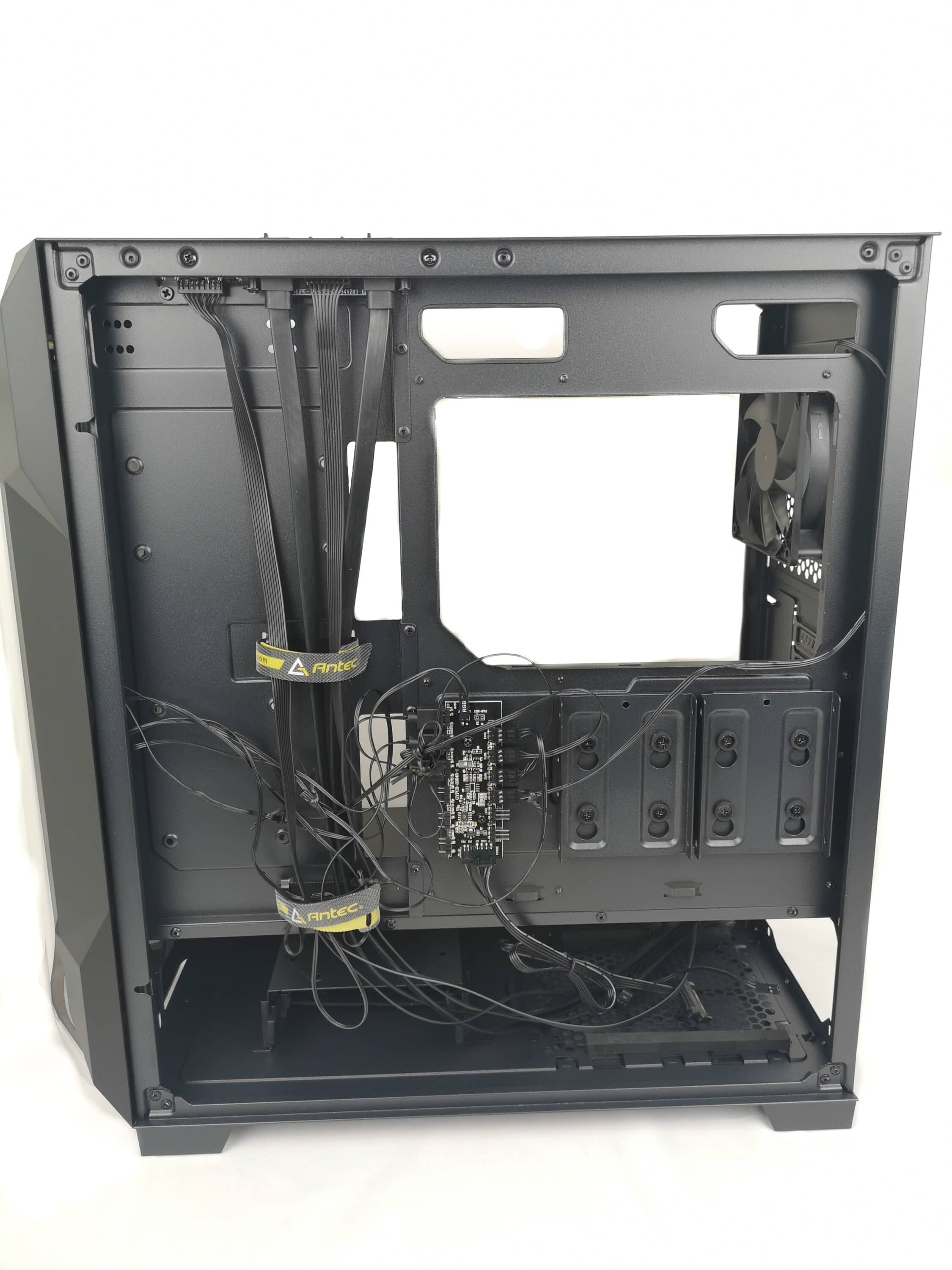 An sich liefert Antec ein sehr gelungenes Gehäuse, zu einem durchaus vernünftigen Preis. Im Lieferumfang sind bereits fünf Gehäuselüfter enthalten, davon sind drei sogar mit einer RGB-Beleuchtung ausgestattet. Optisch hat uns das DF600 vom Hocker gehauen. Die transparente Front und die dahinterliegenden Lüfter machen den Anblick zu etwas besonderem. Das neue Airflow-Design ist nicht von schlechten Eltern und unsere Komponenten bleiben zuverlässig kühl.