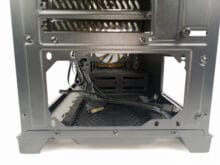 Eine entfernbare Abdeckung des Radiatorendurchlasses hätten wir uns gewünscht, da gerade bei non-modularen Netzteilen der Kabelsalat schwer zu verstecken ist. Auch auf gummierte Kabeldurchlässe müssen wir leider verzichten. Insgesamt ist die Verarbeitung aber sehr gut und es lassen sich keine Unebenheiten oder kritische Stellen erkennen. Selbst die Auswahl der Materialen ist in Ordnung und lässt wenig Wünsche übrig.