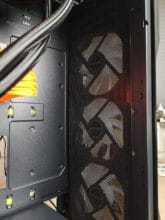 Sieht man sich die Rückseite einmal genauer an, fällt einem direkt die Lüftersteuerung ins Auge, welche für unwissende eine nicht gerade erfreuliche Überraschung parat hält. Der Controller wird über einen SATA-Anschluss mit Strom versorgt und gibt diesen auch an die Lüfter weiter. Es besteht keine Verbindung über ein PWM-Signal zum Mainboard. Die Lüfter laufen also auf 100% Leistung und das ist wirklich für niemanden erträglich. Es empfiehlt sich also einen PWM-Splitter, wie den Deepcool Fan Hub* zu verwenden. Dieser bietet Anschlussmöglichkeiten für bis zu 10 Lüfter gleichzeitig.