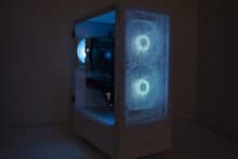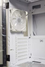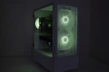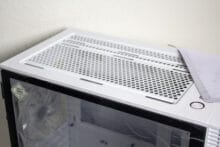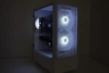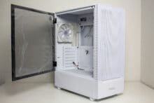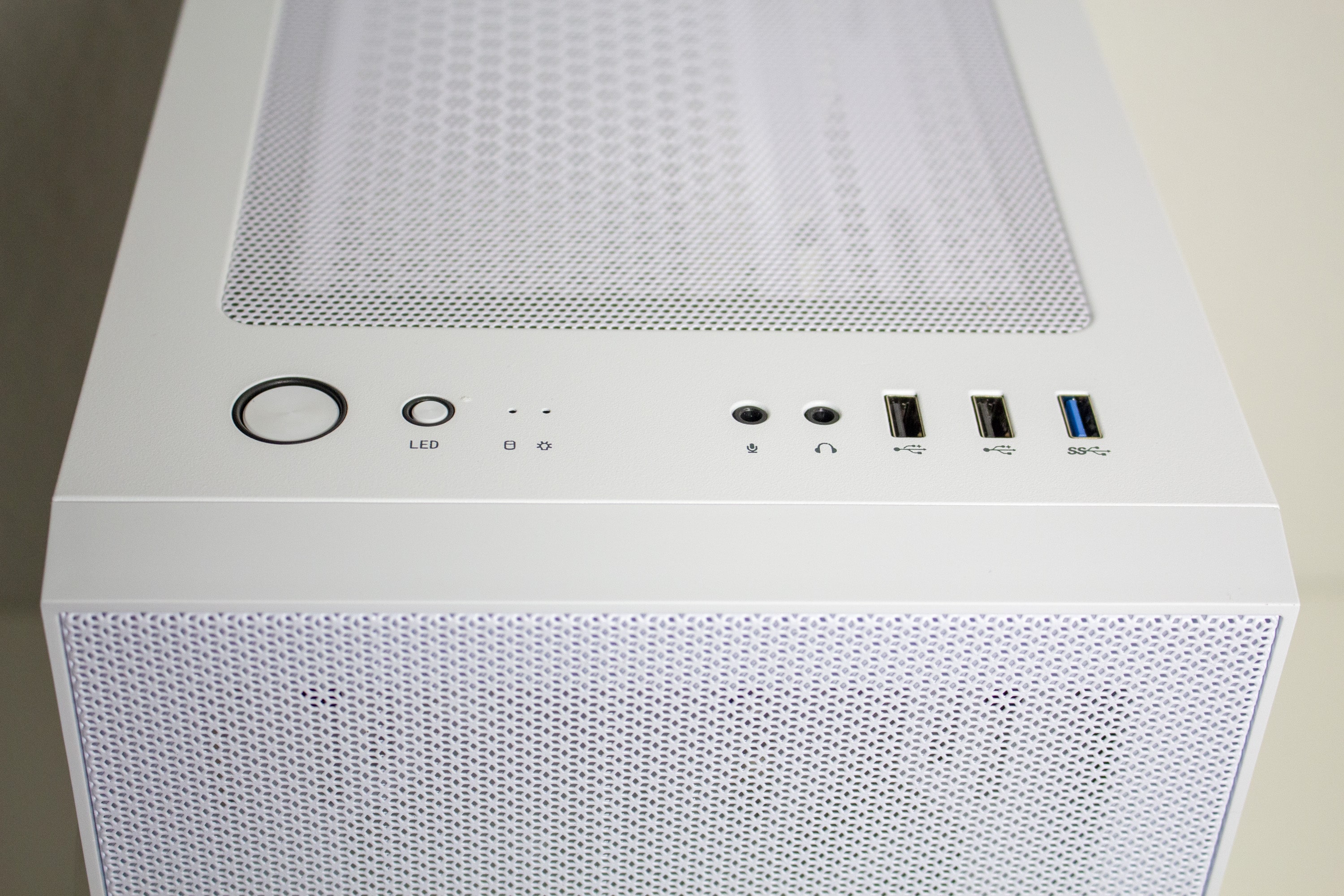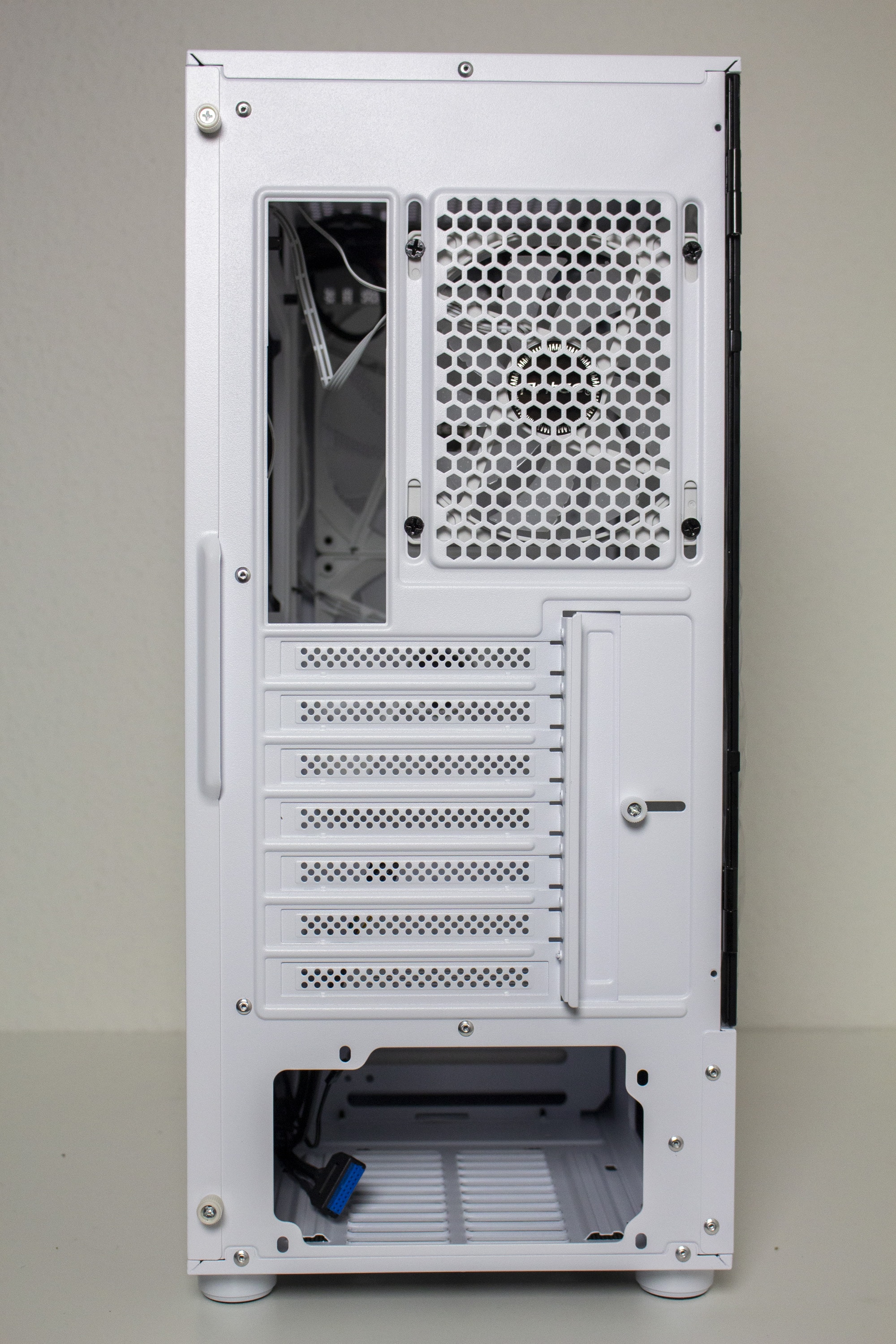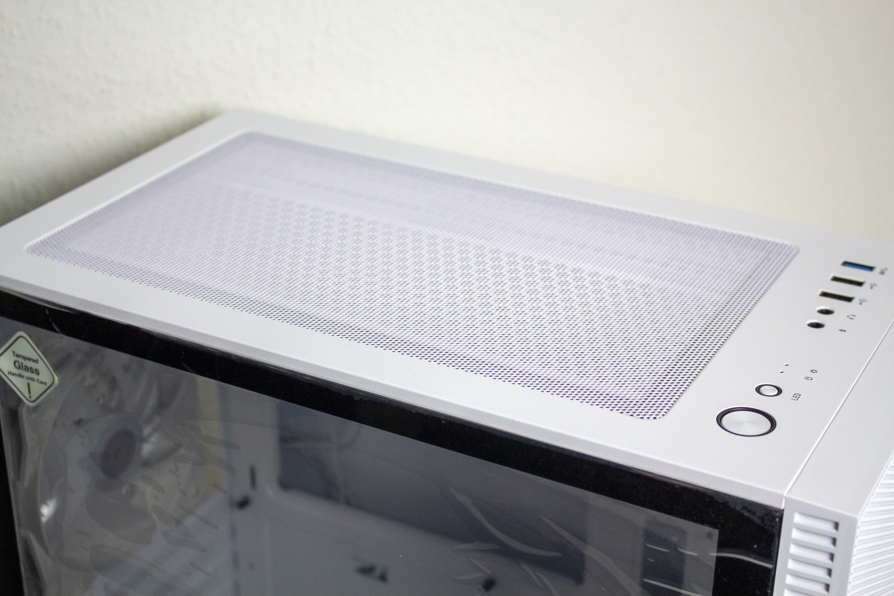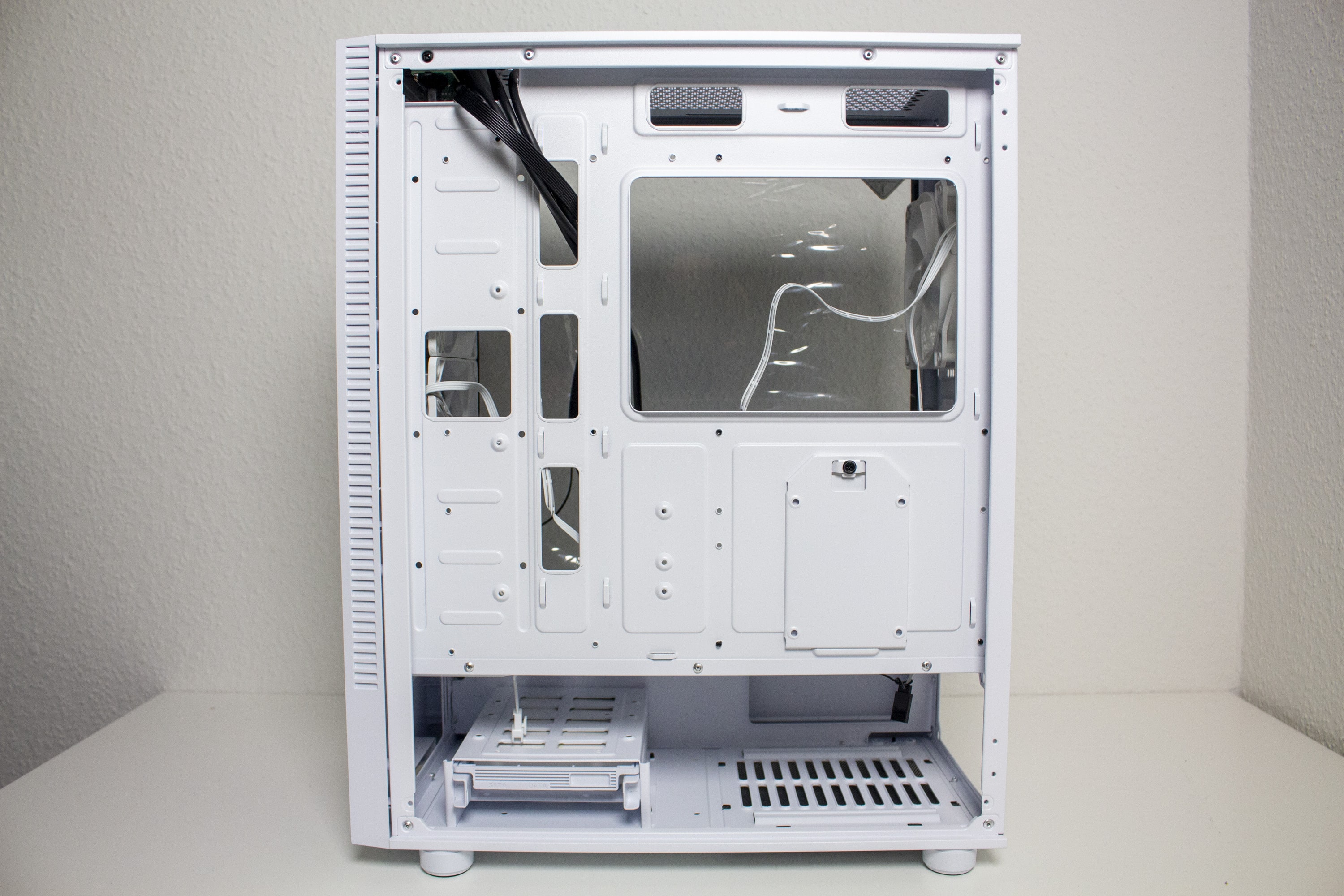 Die Verarbeitung hinterlässt bei uns einen gemischten Eindruck. Die Lackierung ist zwar sauber und es gibt keine scharfen Kanten, dafür sind die Weißtöne der Lüfter, des Korpus, des Kunststoffs und der Meshgitter alle sichtbar unterschiedlich. Zudem ist das Gesamtgewicht mit 5,1 Kilogramm nicht gerade viel für einen Midi-Tower. Das deutet auf eine geringere Materialstärke hin.