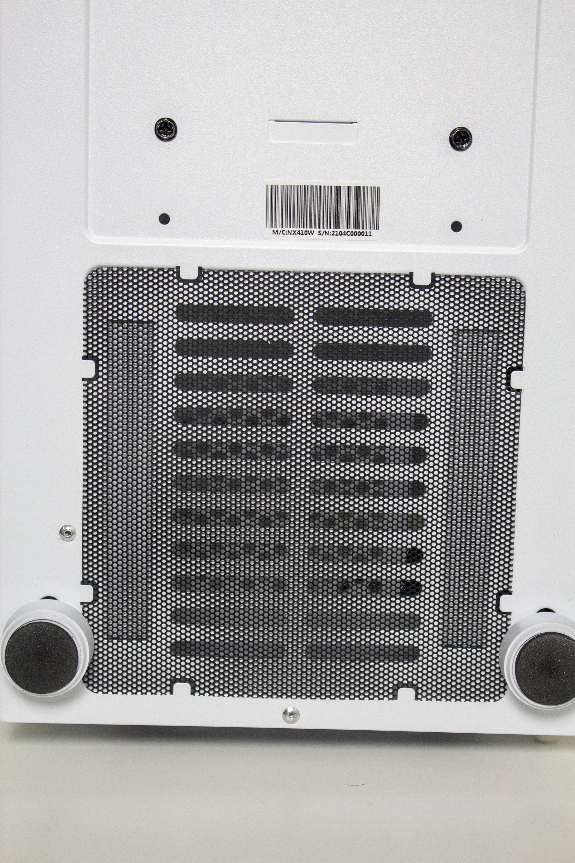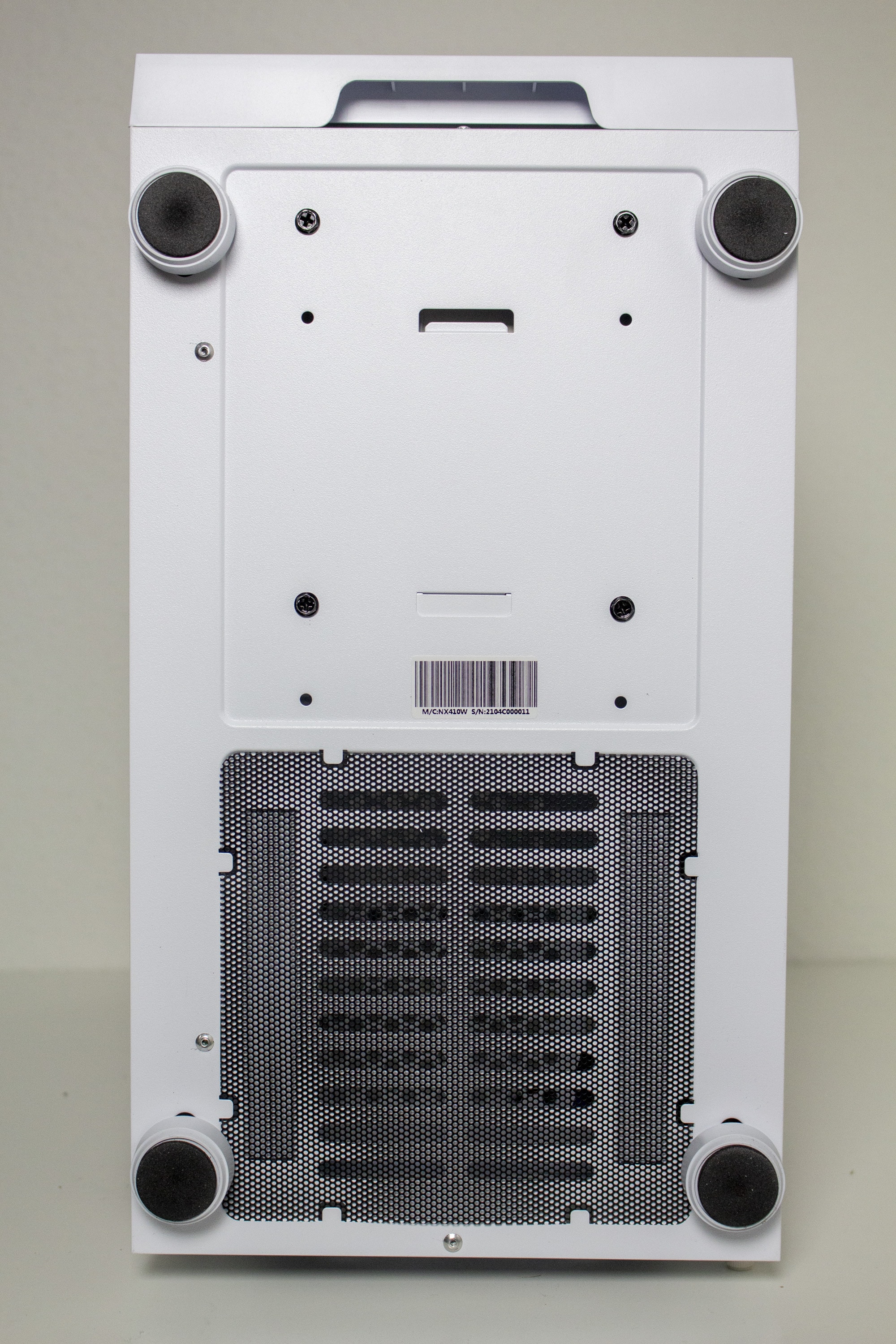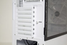 Am Heck und an der Unterseite gibt es keine großen Überraschungen. Der Midi-Tower steht auf vier einfachen Kunststofffüßen, die mit einer Schicht Gummi beklebt wurden, und vor dem Netzteil wurde eine herkömmliche Matte aus Mesh platziert. Über dem im Boden untergebrachten Netzteil bietet das NX410 sieben Erweiterungsslots, deren Blenden aber leider nicht wiederverwendbar sind. Ersatzblenden liegen dem Lieferumfang glücklicherweise bei. Ganz oben gibt es dann den dritten vormontierten RGB-Lüfter mit einer Rahmenbreite von 120 Millimetern.