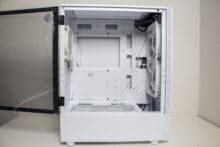 Schaut man aber genauer hin, ist die Optik gleichzeitig auch der erste Kritikpunkt. So konnten wir am NX410 insgesamt vier verschiedene Weißtöne (Stahl, Mesh, Kunststoff, Lüfter) feststellen. Außerdem wirkt der Rahmen am Tempered Glass als einziges schwarzes Element etwas fehl am Platz. Zu diesen optischen Aspekten gesellen sich als negative Punkte noch die Abwesenheit eines zweiten USB 3.0-Ports im I/O-Panel und die insgesamt grenzwertige Materialstärke. Zuletzt sind da dann noch die Lüfter. Im Jahre 2021 Lüfter einzubauen, die nur über einen Molex-Anschluss verfügen, ist in unseren Augen ein absolutes No-Go.