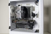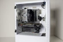 In Bezug auf die Hardwarekompatibilität muss sich das Antec NX410 nicht verstecken. So stehen für CPU-Kühler 168 Millimeter und für Grafikkarten 335 Millimeter zur Verfügung. Letzteres wird natürlich eingeschränkt, wenn man in der Front einen Radiator verbaut. Muss der HDD-Käfig verbaut bleiben, darf das Netzteil maximal 165 Millimeter lang sein. Ohne Käfig gibt es keine Begrenzung. Auch für Radiatoren gibt es ausreichend Platz. So kann man in der Front maximal einen 360-Millimeter- und im Deckel einen 280-Millimeter-Radiator platzieren.