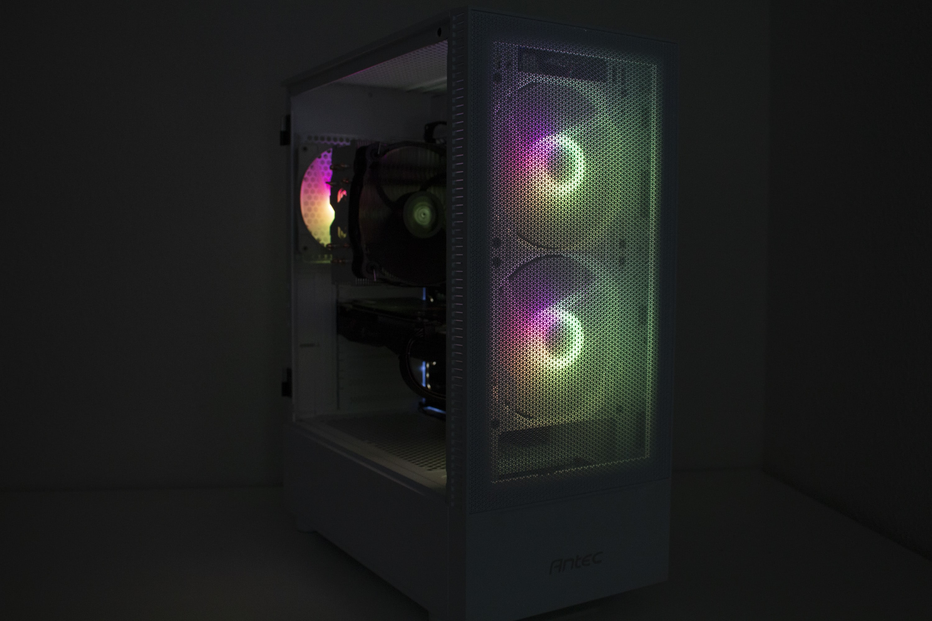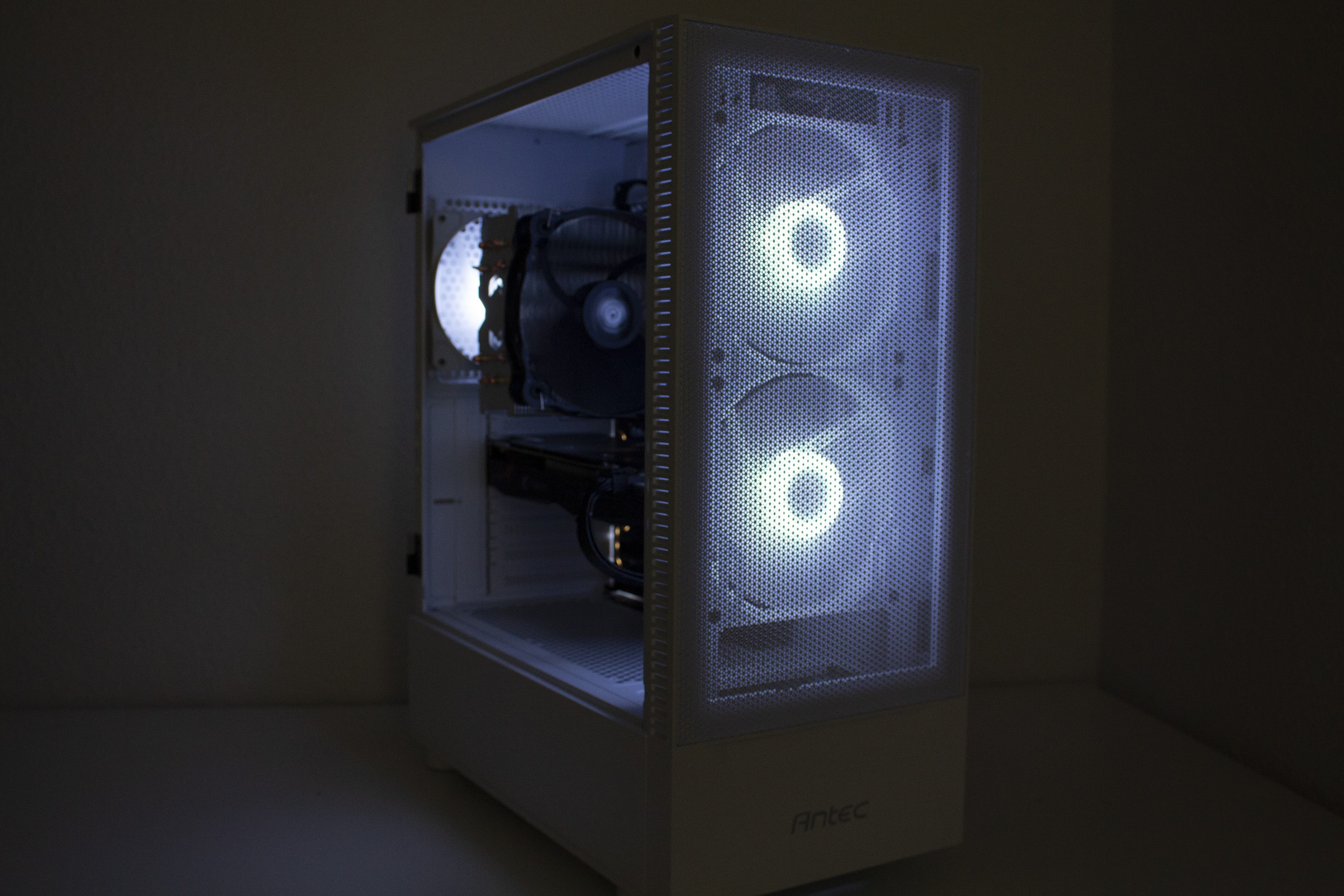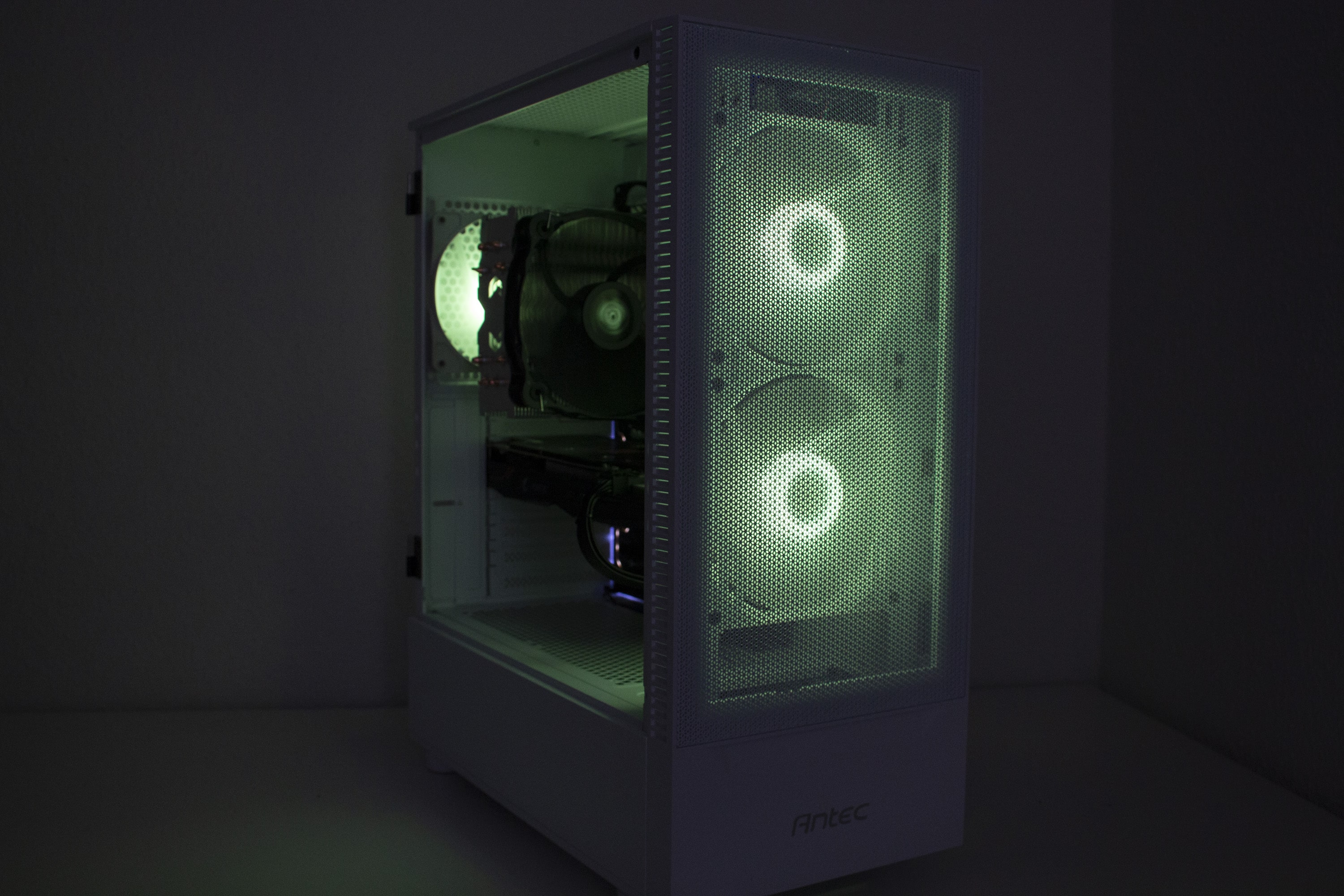 Das Antec NX410 ist ein kompakter Midi-Tower und kann durch viel RGB und Airflow u00fcberzeugen. Nicht steuerbare Lu00fcfter, die teils geringe Materialstu00e4rke und der im Vergleich hohe Kaufpreis verhindern aber eine Kaufempfehlung.