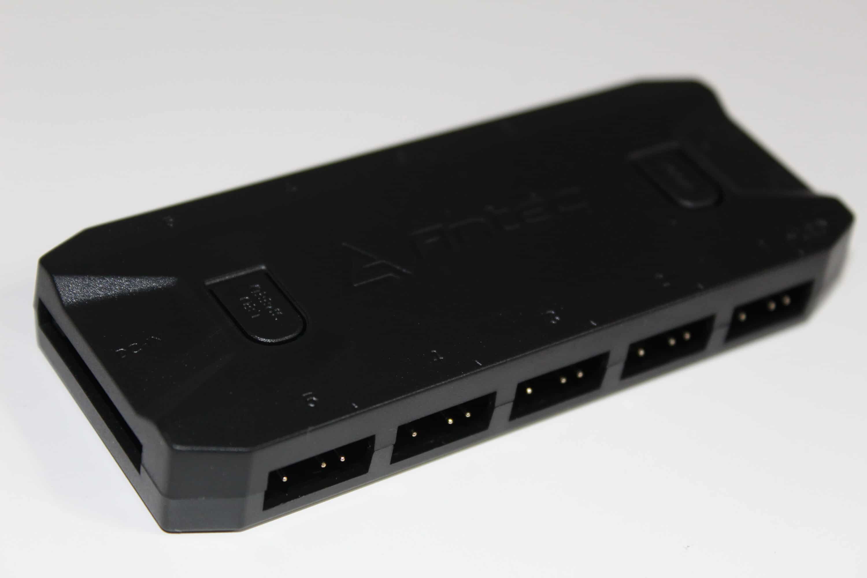 Zu guter Letzt ist ein RGB-Controller beigelegt. Dieser ist sauber verarbeitet und sehr leicht. Erfreulicherweise wird für die Stromversorgung ein SATA-Stromkabel verwendet – viele Konkurrenten nutzen leider noch den MOLEX-Stecker, der eher unpraktisch und mittlerweile etwas veraltet ist.