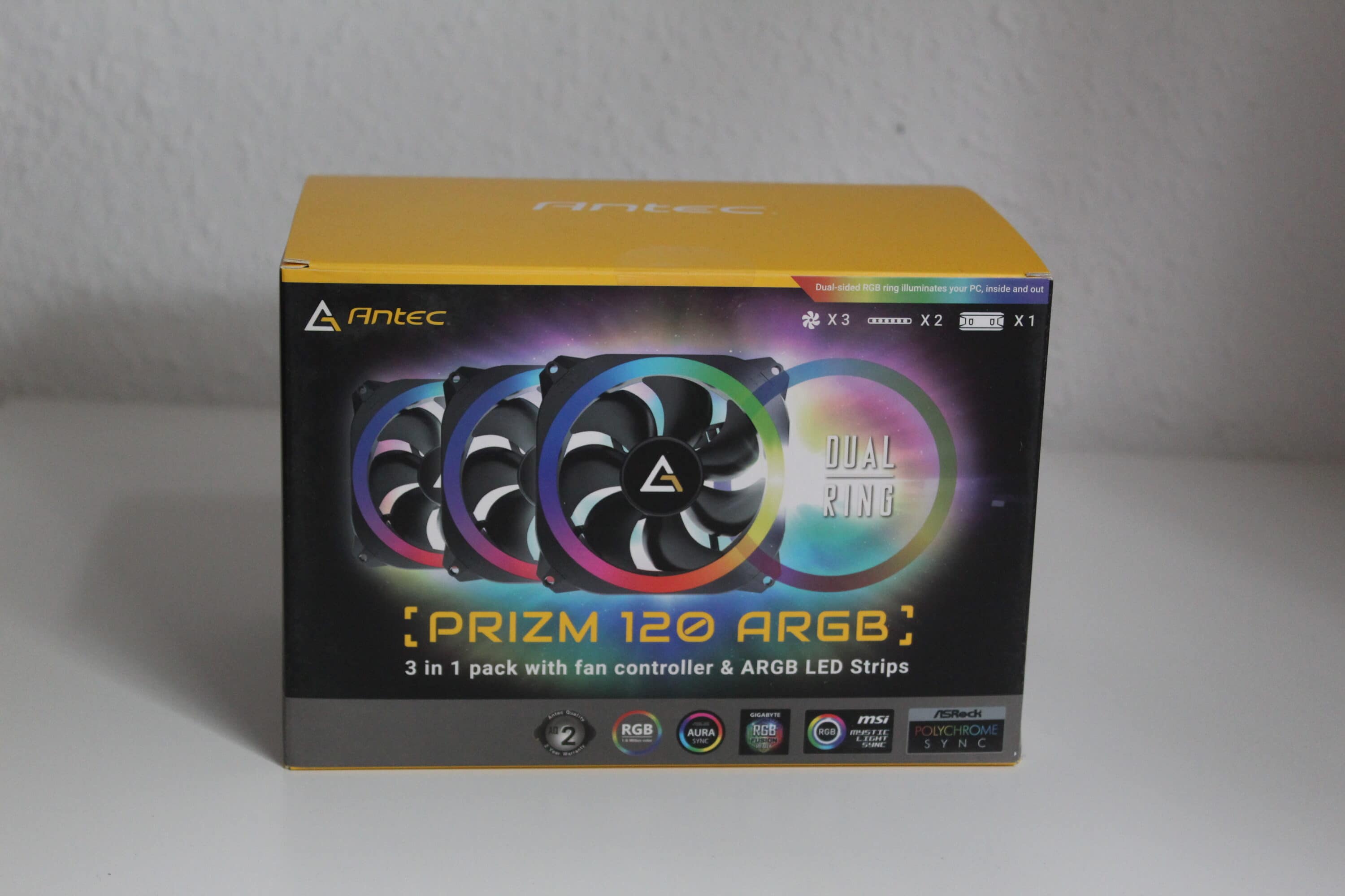 Der Komponentenmarkt wird zunehmend von RGB-Elementen auf diversen Komponenten gefüllt – um ein Gehäuse von innen strahlen zu lassen, bietet auch Antec ein RGB-Set an, welches aus drei RGB-Lüftern, zwei LED-Leisten und einem Controller besteht. Dieses Set haben wir für euch getestet und überprüft, wie es tatsächlich abschneidet. Zusätzlich zu diesem Set, kann man die Antec Prizm ARGB-Lüfter auch als Set aus fünf Lüftern inkl. Controller, zwei Lüftern inkl. Controller oder aber auch als Einzelpack bestellen.