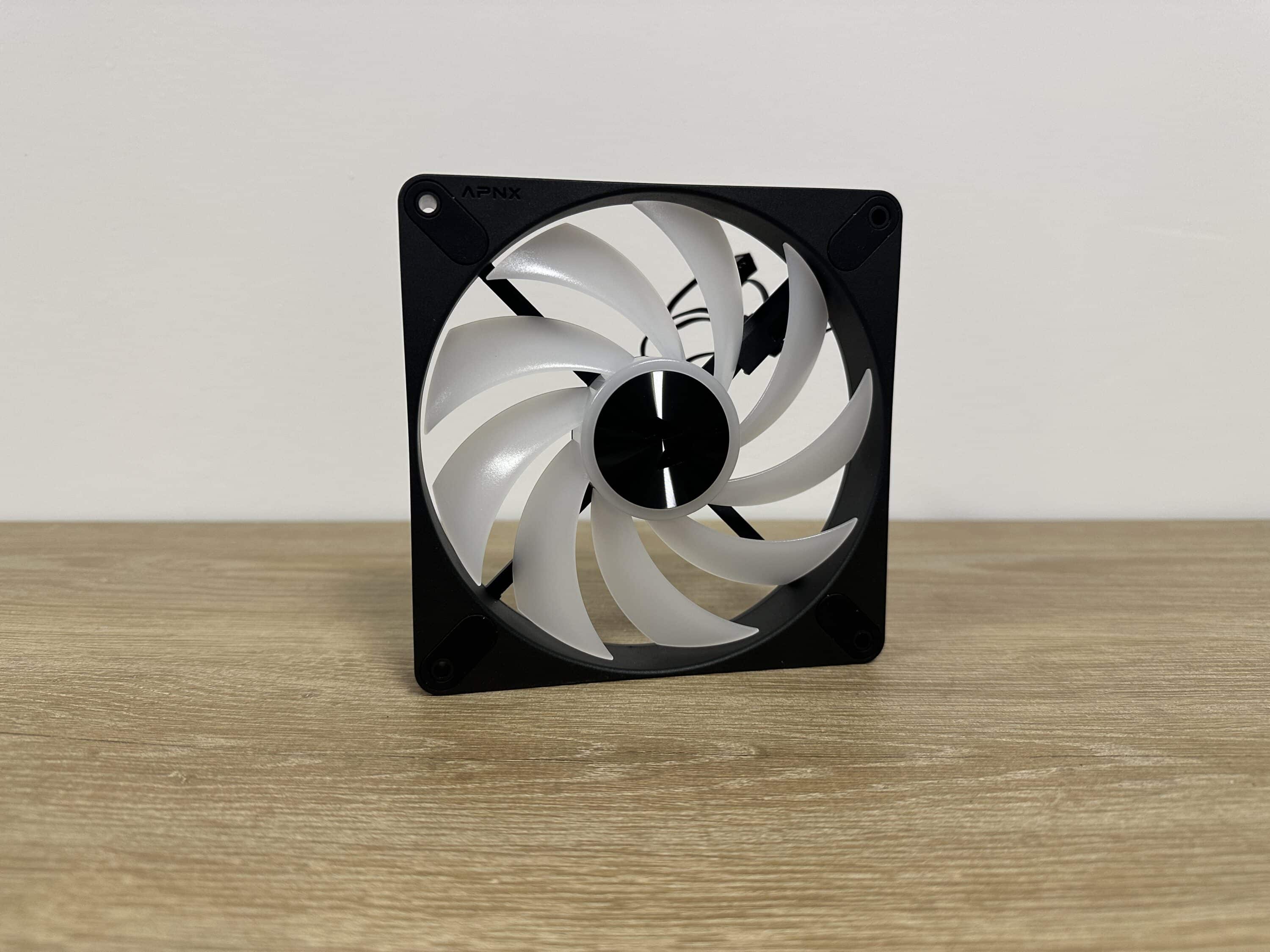 Ein besonderes Augenmerk verdient das Lüfter-Setup des APNX V2, denn bereits ab Werk sind vier FP3-Lüfter vorinstalliert. Diese gehören zur neuesten Generation des Herstellers und machen nicht nur optisch, sondern auch technisch einen hochwertigen Eindruck. Die Rotorblätter sind stabil verarbeitet, laufen ruhig und vermitteln insgesamt ein Gefühl von Langlebigkeit.