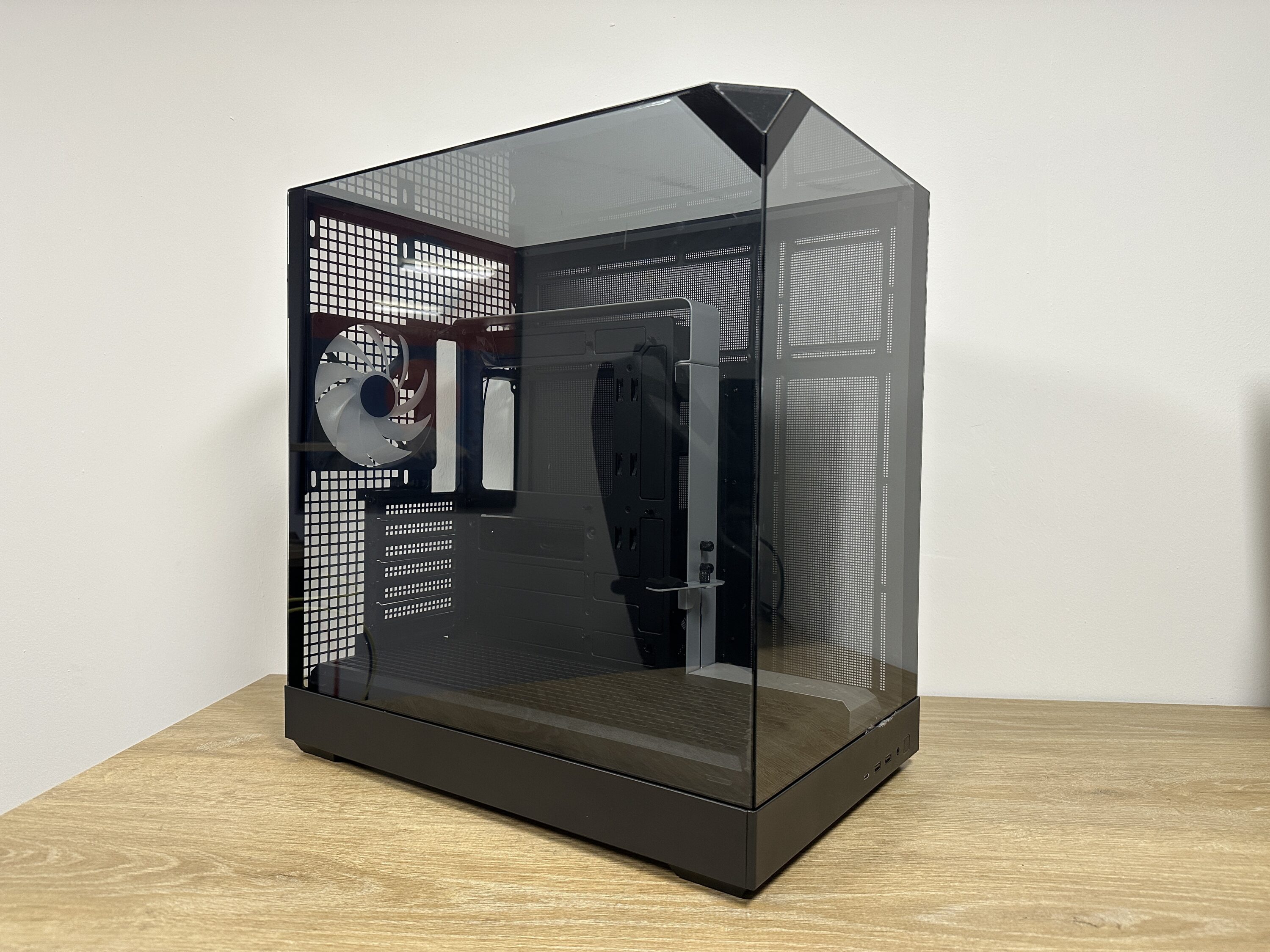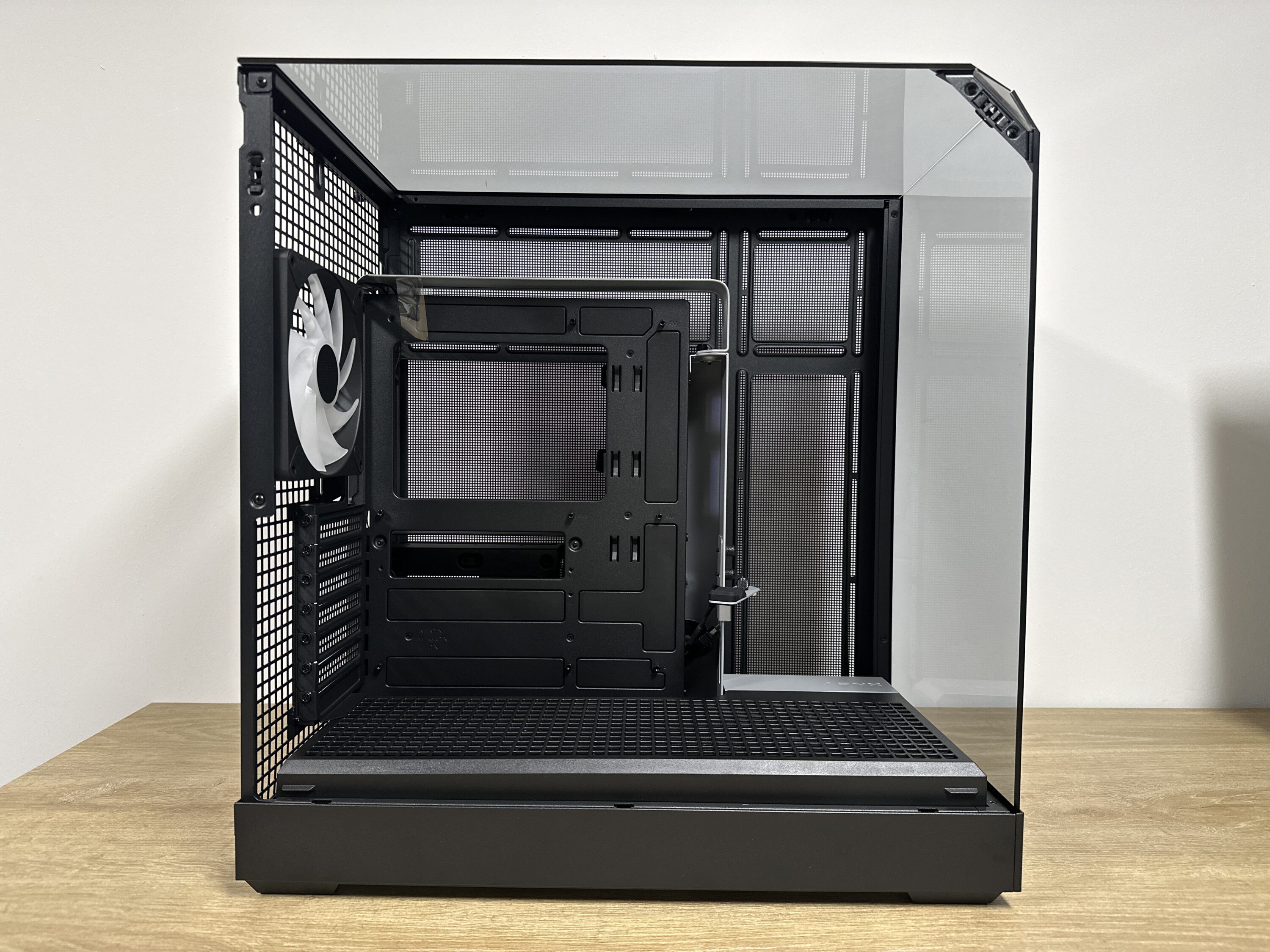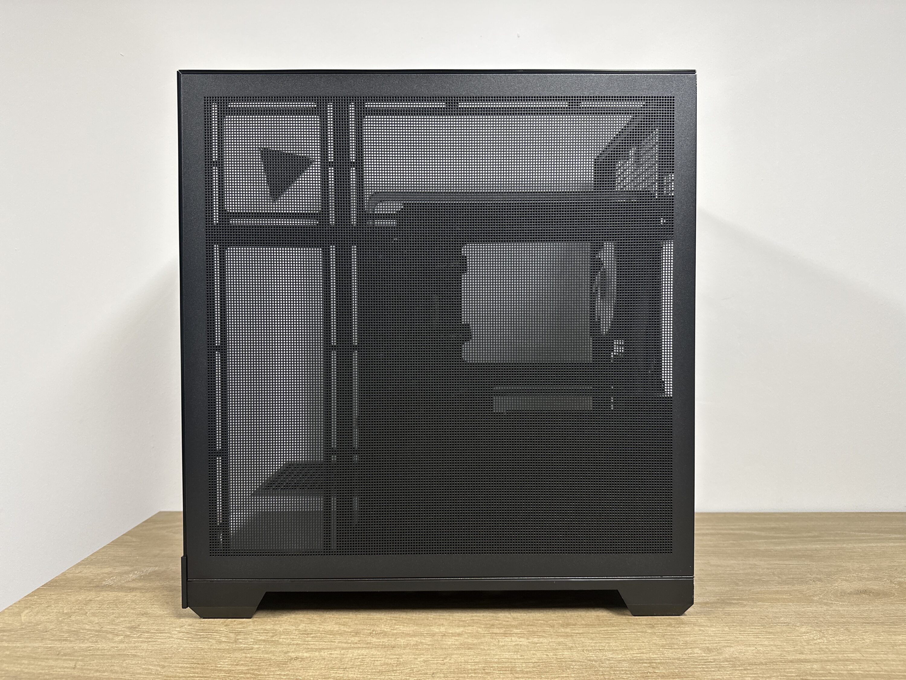 Bei der Verarbeitung hinterlässt das APNX V2 einen durchweg positiven Eindruck. Die 0,8 Millimeter starke Stahlkonstruktion wirkt robust und verwindungssteif, während die Übergänge zwischen Glas und Metall präzise gearbeitet sind. Die großflächigen Tempered-Glass-Paneele sitzen sauber in ihren Halterungen und schließen bündig mit dem Rahmen ab, sodass weder Spaltmaße noch unsaubere Kanten auffallen. Auch bei wiederholtem Öffnen und Schließen der Seitenteile bleibt die Mechanik stabil und zuverlässig.