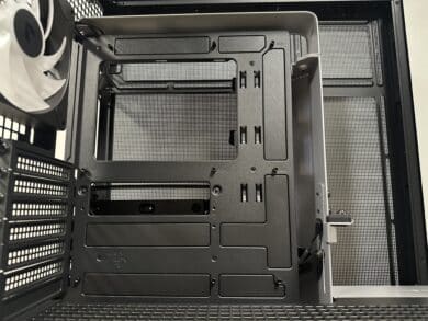 Die Montage von Kühlungen ist ebenfalls flexibel gelöst. Radiatoren bis 360 Millimeter lassen sich sowohl vorne, als auch am Boden verbauen, während das X-Pand Flow Design hinter dem Mainboard eine zusätzliche Position für einen 240-Millimeter-Radiator eröffnet. Dadurch ist es möglich, selbst komplexe Custom-Loop-Setups ohne größere Anpassungen zu realisieren.