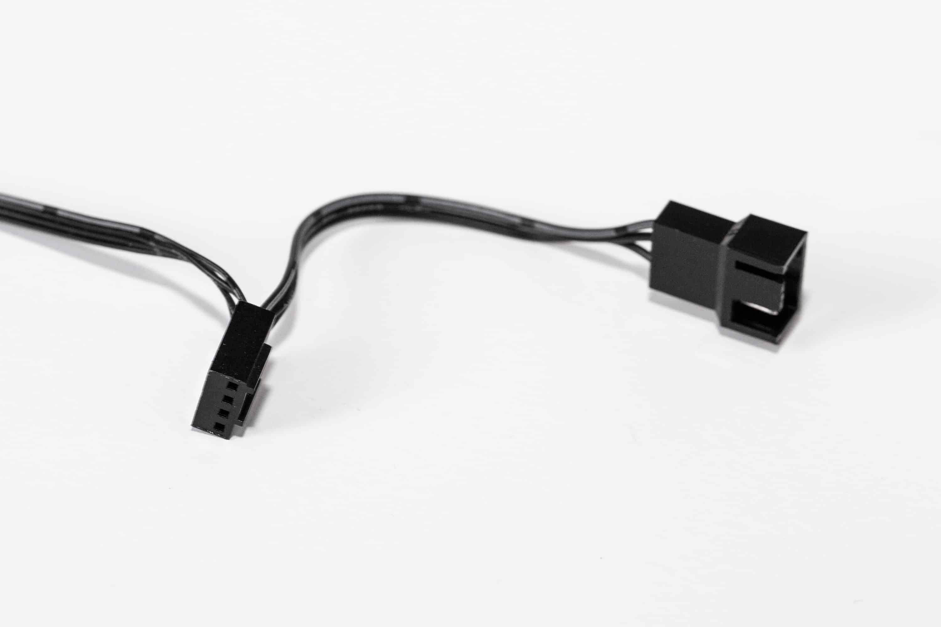 Zunächst einmal zum Namen des Arctic F12 PWM PST. Der Unterschied zum günstigeren PWM-Modell ist das „PST“, was „PWM Sharing Technology“ bedeutet. Das ist die Lüfteranschluss-Buchse, die neben dem PWM-Stecker sitzt. Hiermit kann man weitere Lüfter anschließen („Daisy Chaining“) und kommt so mit weniger Lüfter-Headern auf dem Mainboard aus. Wer genug Header besitzt, was auf teureren Mainboards häufiger passiert als auf günstigeren, der könnte mit der normalen PWM-Version des Lüfters etwas sparen. Das Kabel des Artic F12 PWM PST ist dünn und schwarz gehalten. So kann es einfach und unauffällig verlegt werden.