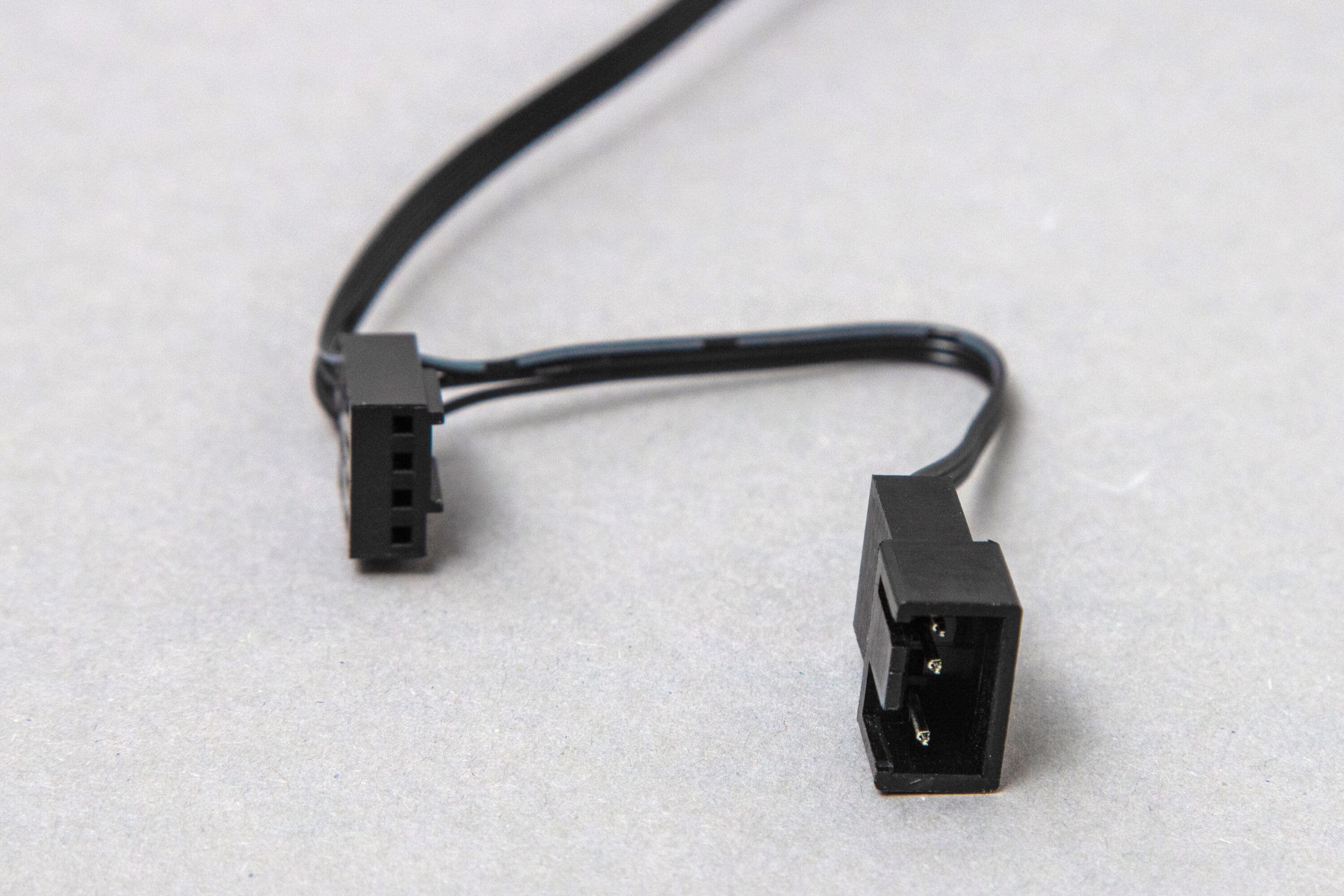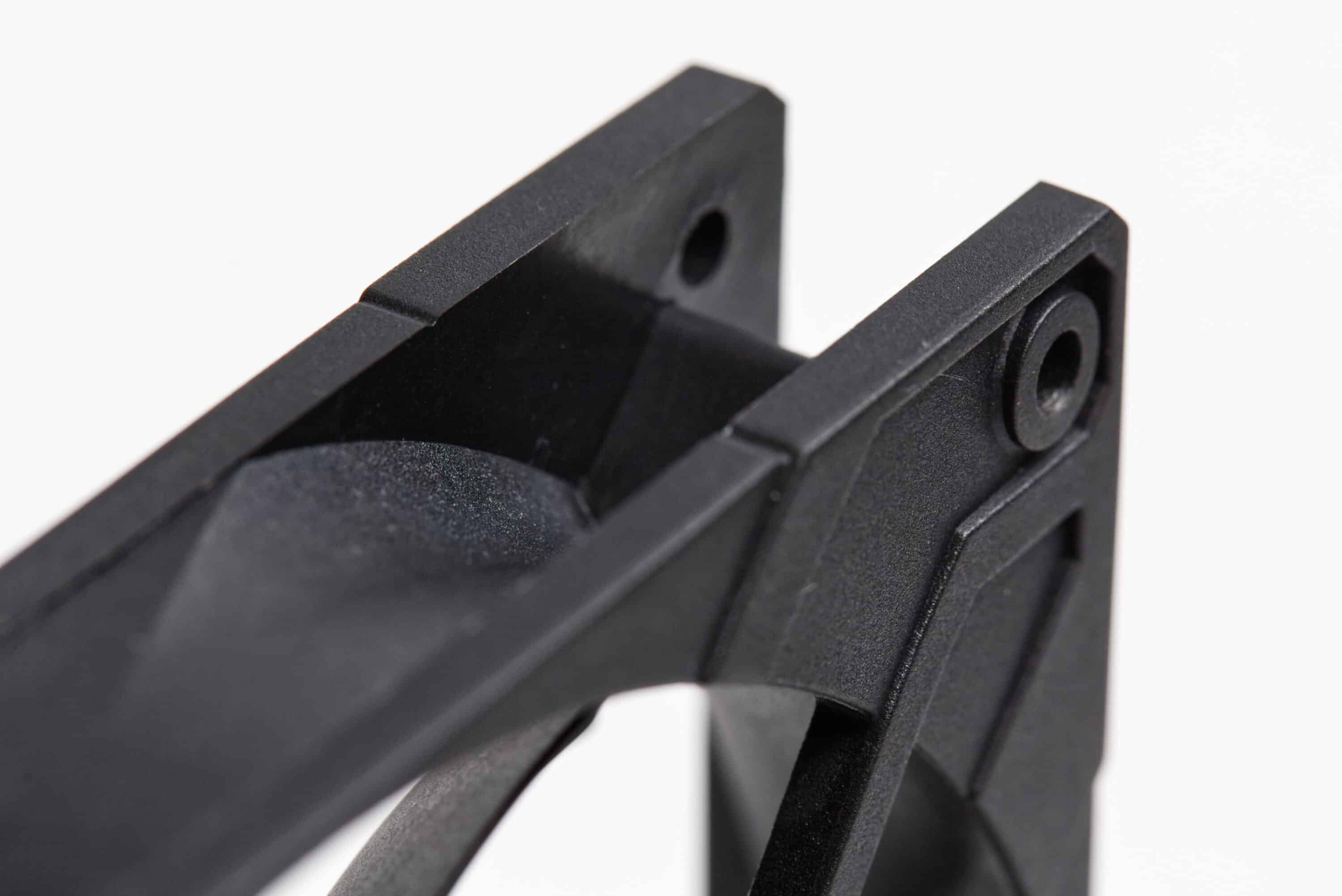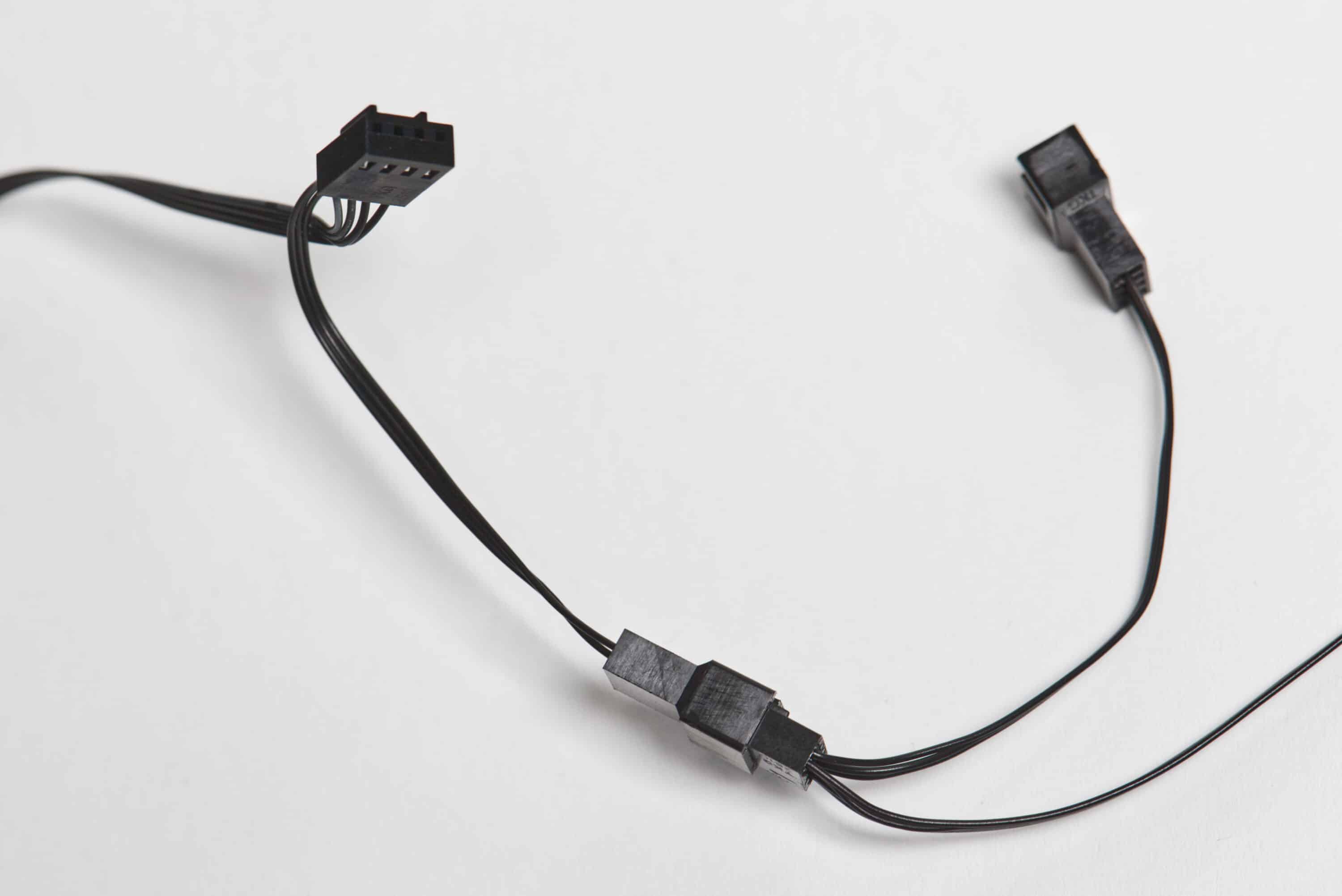 Der Rahmen besitzt keinerlei gummierte Auflageflächen. Auch das Kabel ist sehr simpel gehalten. Ein dünnes, unauffälliges, schwarzes Kabel wirkt jetzt nicht unbedingt nach gehobener Klasse, aber es lässt sich immerhin unauffällig verlegen. Außerdem hat die hier getestete PST-Variante einen integrierten Splitter. Das bedeutet, dass man das Kabel eines weiteren Lüfters an das Ende des ersten Lüfters anschließen kann. So kan man beispielsweise auch mit nur einem Header für Gehäuselüfter ein volles Pack an Arctic F14 PWM PST aneinander ketten.