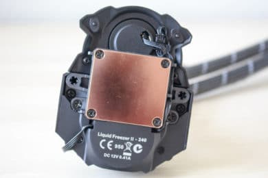 Optisch ist die Arctic Liquid Freezer II 240 schlicht gehalten und der Hersteller verzichtet zugunsten eines günstigeren Preises auf sämtliche RGB-Effekte oder digitale Displays. Der aus Aluminium gefertigte Radiator ist komplett schwarz lackiert und 38 Millimeter dick. Da diese Dicke bei der Konkurrenz häufig etwas niedriger geringer ausfällt, könnte die Liquid Freezer II bessere Temperaturen erreichen. Allerdings erhöht die zusätzliche Dicke auch die Wahrscheinlichkeit, dass es in manchen Gehäusen zu Kompatibilitätsproblemen kommen könnte.