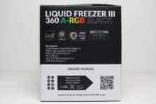 Arctic verpackt die Liquid Freezer III 360 A-RGB in einem einfachen Karton aus Pappe, auf dem die Hauptfarben Schwarz und Weiß dominieren. Neben dem Herstellerlogo finden wir auch den Produktnamen sowie eine schematische Zeichnung der Kompaktwasserkühlung auf der Verpackung. An der Rückseite lassen sich dann noch eine Tabelle mit allen technischen Daten sowie eine Auflistung des Verpackungsinhalts erkennen.