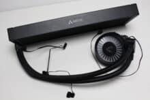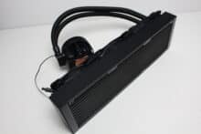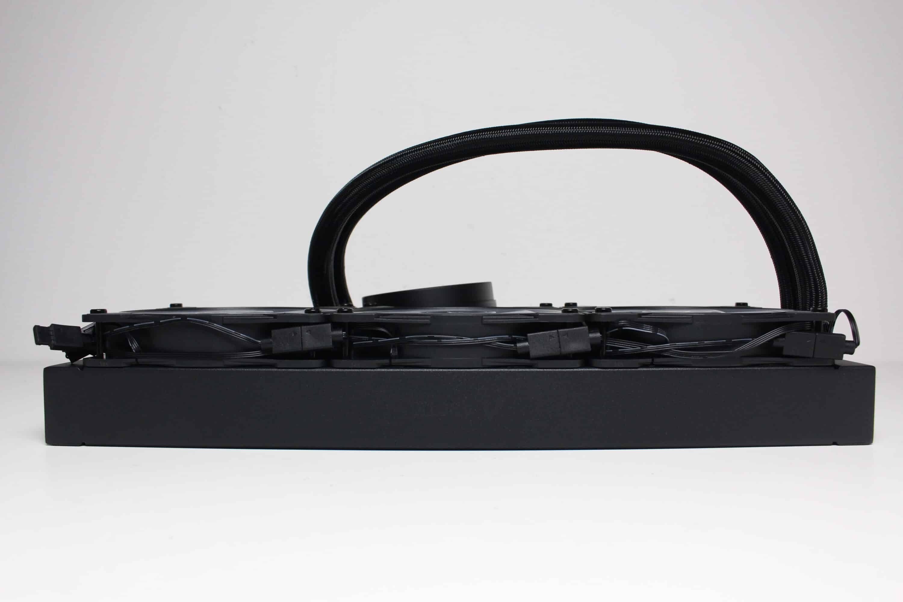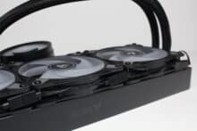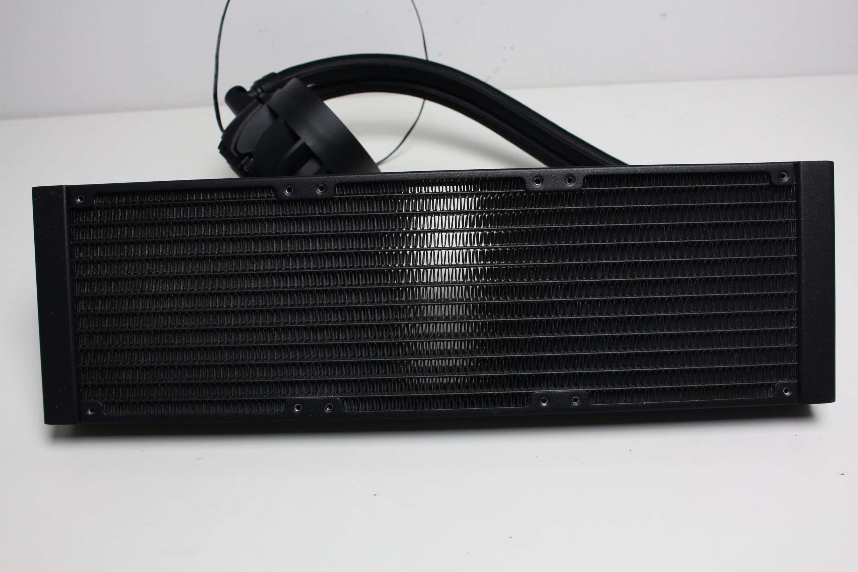 Im Vergleich zur Liquid Freezer II hat sich beim Radiator nahezu nichts verändert. So besteht dieser bei der Liquid Freezer III ebenfalls aus Aluminium, wurde schwarz lackiert und präsentiert seitlich das Herstellerlogo. Ebenfalls identisch ist die Radiatortiefe mit 38 Millimetern, die gut einen Zentimeter über dem typischen Durchschnitt liegt und somit die Kühlleistung positiv beeinflussen dürfte. Einen negativen Einfluss kann diese Dicke allerdings auf die generelle Kompatibilität in kompakteren Gehäusen haben.