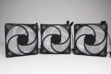 Bei voller Geschwindigkeit (ca. 1900 rpm) sind die Arctic P12 zwar hörbar, aber deutlich weniger auffällig als die Lüfter vieler anderer Kompaktwasserkühlungen, die mit bis zu 2500 Umdrehungen pro Minute ihre Arbeit verrichten. Bei 50% PWM (ca. 1100 rpm) agieren die Ventilatoren dann deutlich unauffälliger. Aufpassen sollte man bei einem PWM-Bereich im letzten Viertel, da es hier in einem bestimmten Abschnitt zu gewissen Störgeräuschen beim Betrieb der Lüfter kommen kann.