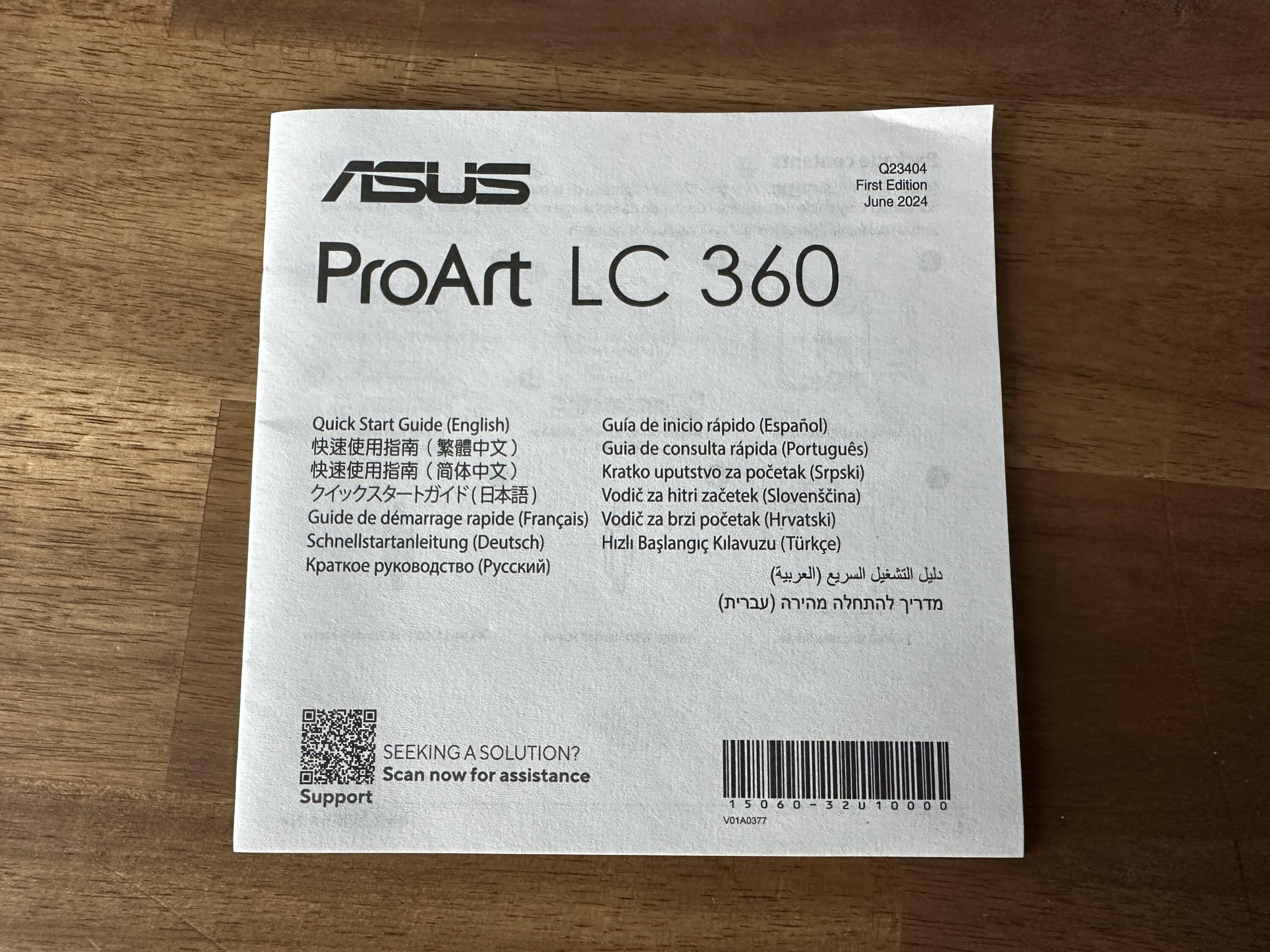 In puncto Verarbeitung lässt die Asus ProArt LC 360 kaum Wünsche offen – und das ist angesichts der professionellen Zielgruppe auch notwendig. Bereits beim ersten Kontakt wird deutlich, dass hier nicht nur funktional, sondern auch mit einem klaren Qualitätsanspruch gearbeitet wurde. Die Materialwahl wirkt durchdacht und ist dem Preisniveau absolut angemessen.