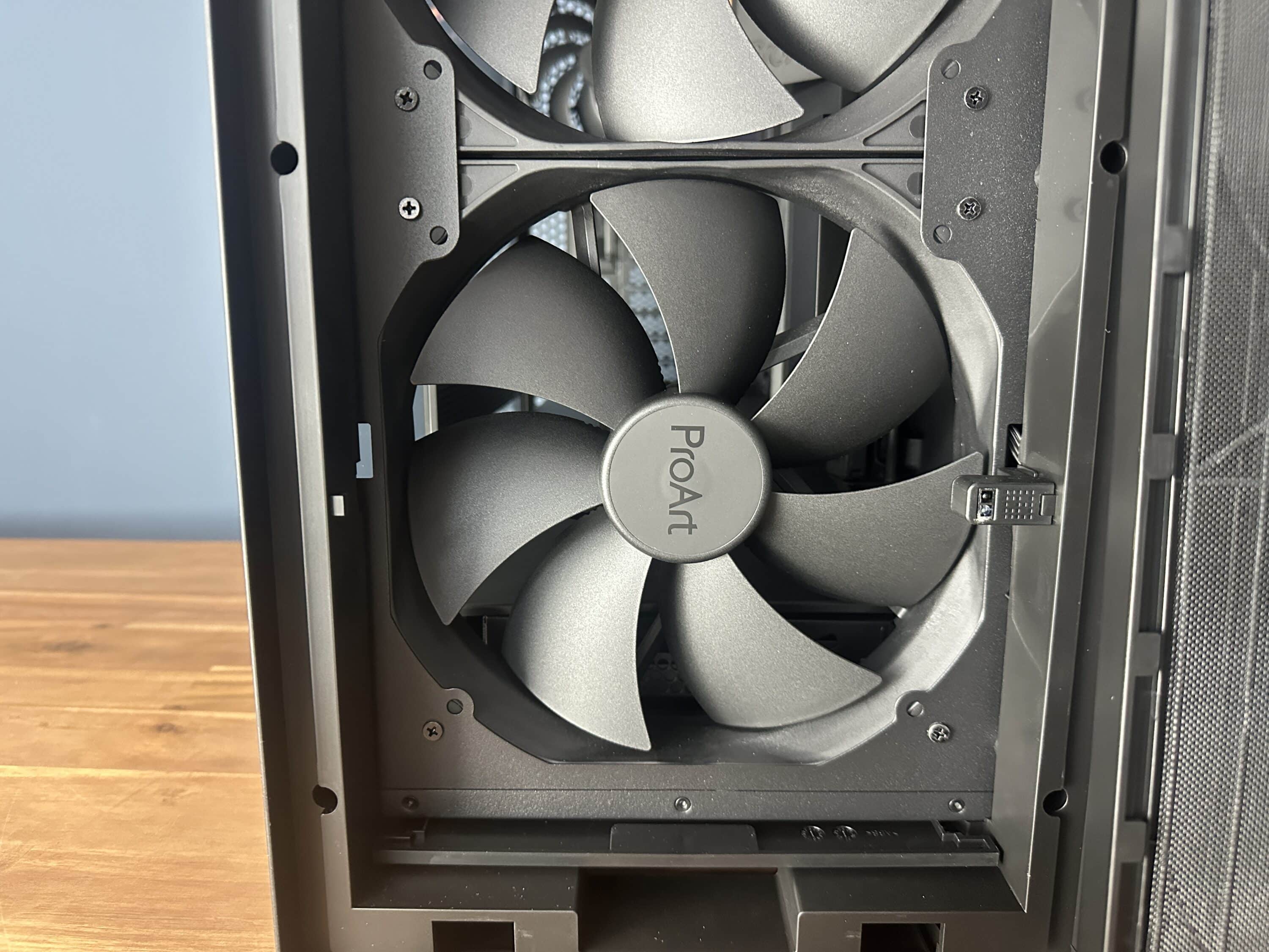 Als Testplattform diente ein System mit AiO-Wasserkühlung vom Typ Asus ProArt LC360, welche zur gleichen Produktfamilie gehört und optimal in das Gehäuse integriert werden kann. Der Radiator wurde dabei im Deckel montiert.