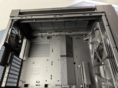 In der Praxis überzeugt das Gehäuse mit viel Platz, cleveren Details wie dem beweglichen Kabelkanal, einer soliden Lüftersteuerung und durchdachter Aufteilung im Innenraum. Auch die Montage verläuft größtenteils problemlos, wenn man vom etwas umständlichen Einbau des Netzteils absieht.