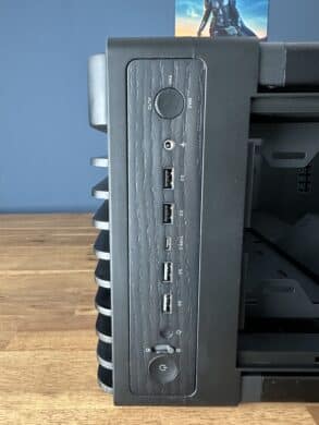 Kritisch zu betrachten ist allerdings die Materialwahl: Die breite Verwendung von Kunststoff – sowohl innen als auch außen – lässt das Gehäuse nicht überall so hochwertig wirken, wie es sein Anspruch und Preis vermuten lassen. Auch die optische Wirkung der Holzakzente bleibt hinter den Erwartungen zurück, insbesondere wenn man sich eine markante „Wood Edition“ mit sichtbarer Maserung erhofft.
