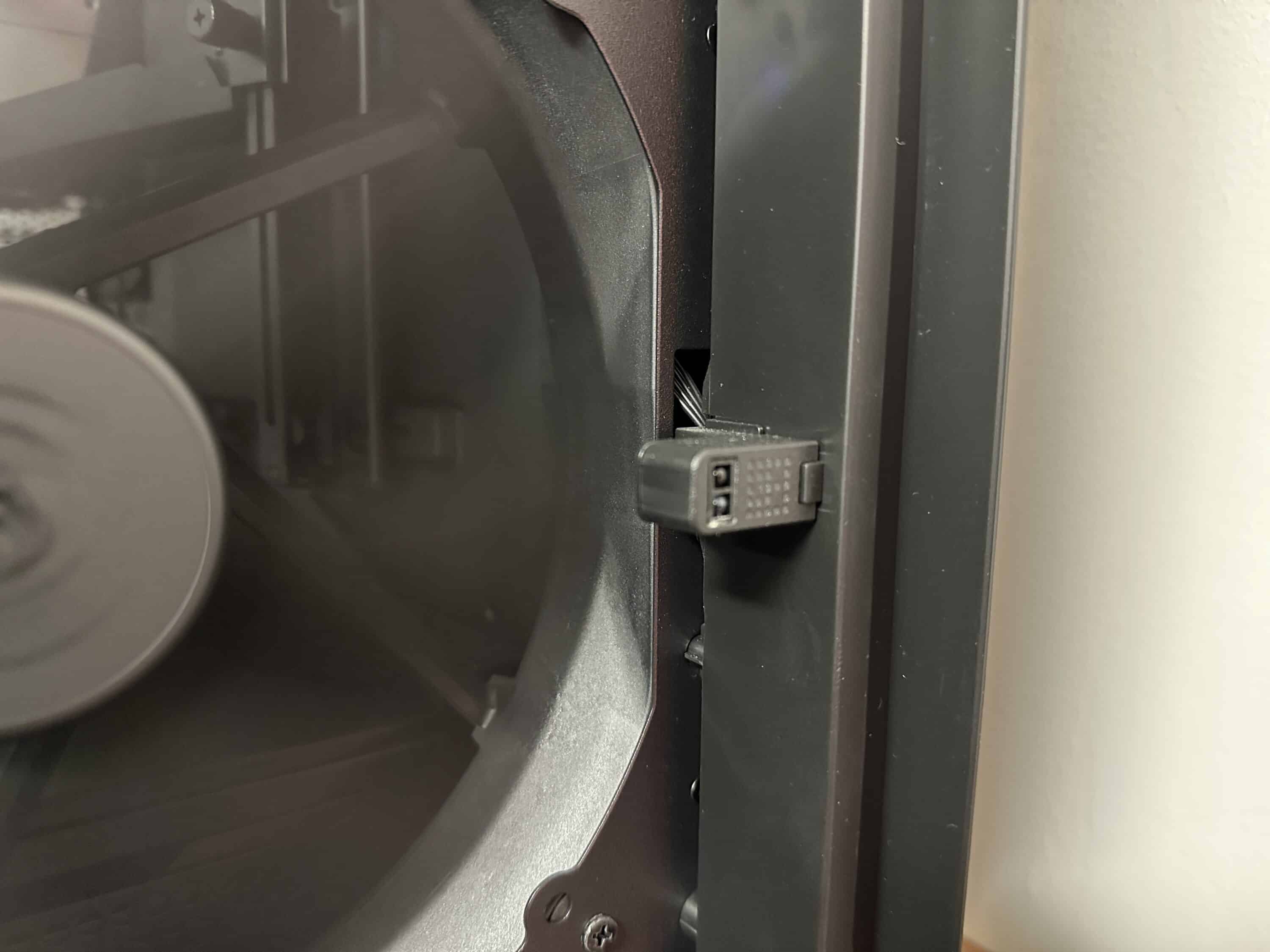 Das rechte Seitenteil ist nahezu identisch mit dem linken, allerdings fehlt hier das Glaselement. Stattdessen ist es durchgehend geschlossen, was zur Geräuschdämmung beiträgt, aber auch bedeutet, dass auf dieser Seite keine größere Belüftung vorgesehen ist.