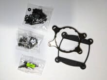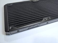Zuerst befestigen wir die Lüfter am Radiator und diesen anschließend am Gehäuse. Wir haben uns für den Einbau in der Front entschieden. Allgemein sollte man beachten, dass die Schläuche mit 38 cm recht kurz sind, so war ein Einbau in der Front unseres Gehäuses mit Anschlüssen nach unten nur gerade so noch möglich. Anschließend befestigen wir die Backplate mit Hilfe der beiliegenden Schrauben. Durch die Schrauben ist kein Verrutschen oder Herausfallen von Teilen möglich, was die Montage erleichtert. Anschließend legen wir den Kühlkörper auf und befestigen ihn mit den Muttern.
