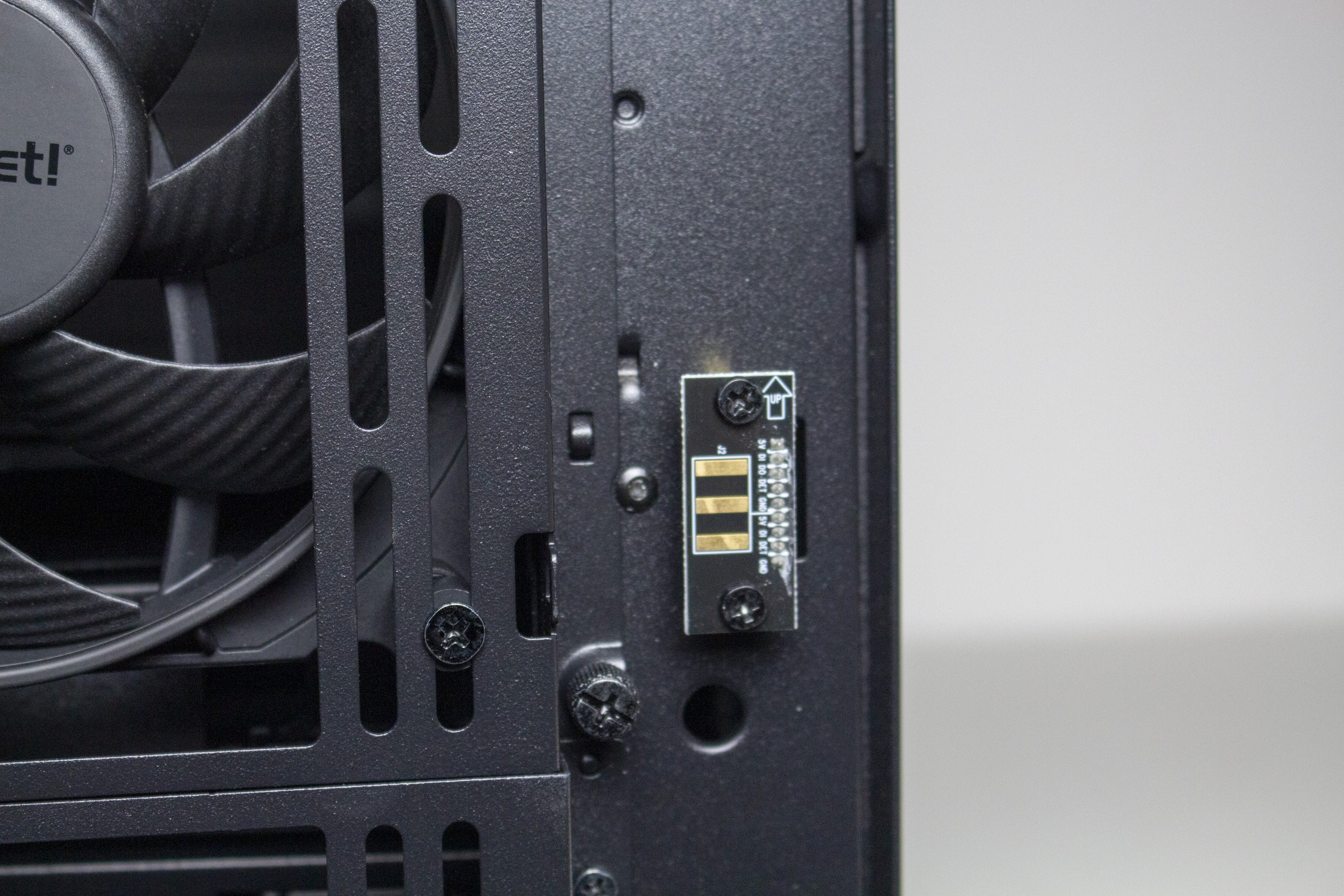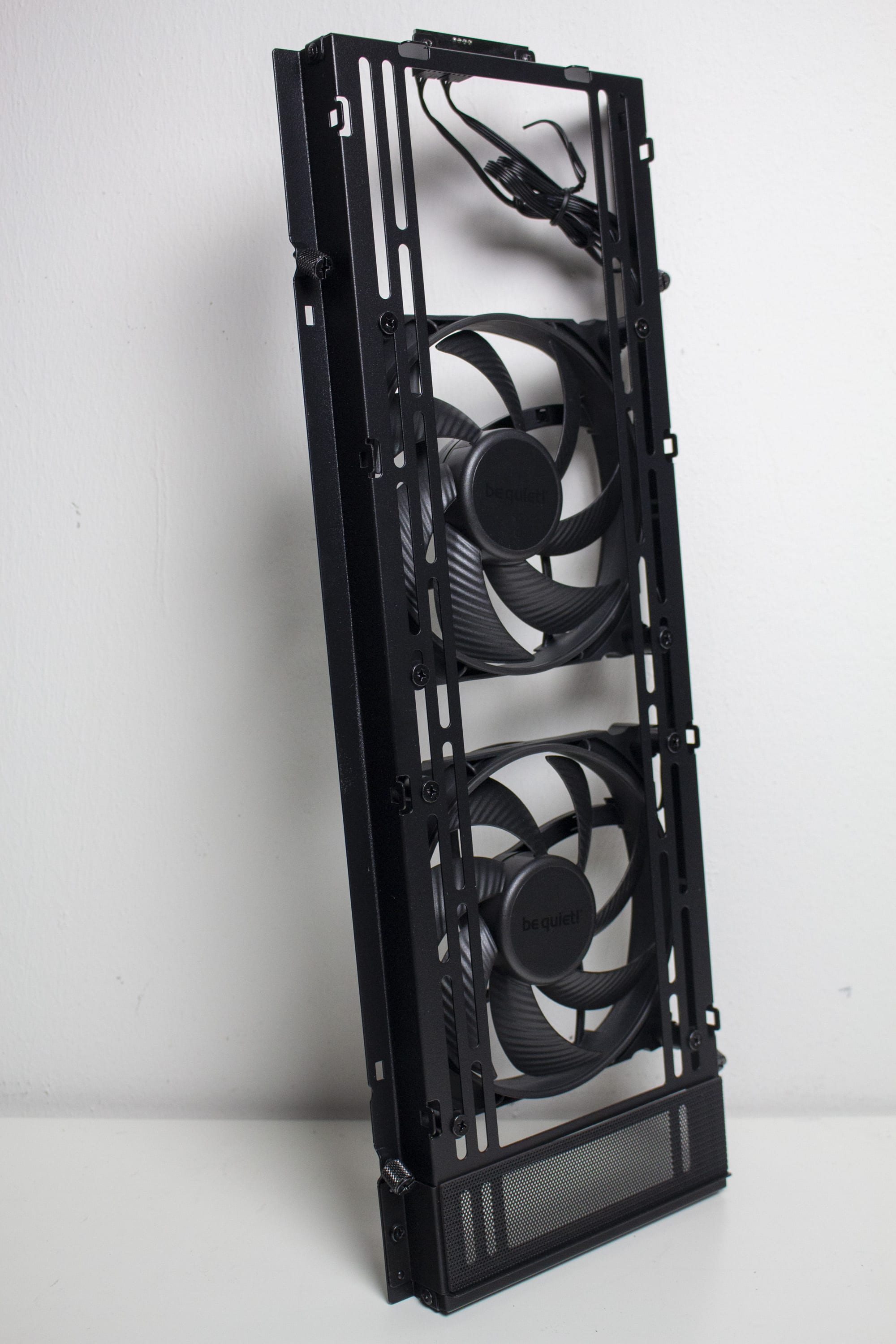 Eine weitere Besonderheit ist, das be quiet! zur vertikalen Montage der Grafikkarte nicht auf eine optional erwerbbare Halterung setzt. Stattdessen kann der Rahmen mit den Slotblenden durch die Entfernung einiger Schrauben einfach ausgebaut und um 90 Grad gedreht werden. Ein entsprechendes Riser-Kabel zum Anschluss der Grafikkarte muss aber zusätzlich erworben werden. Diese Technik haben wir bereits beim Thermaltake Ceres 300 TG ARGB gesehen und werden ihr in Zukunft sicher noch öfter begegnen.