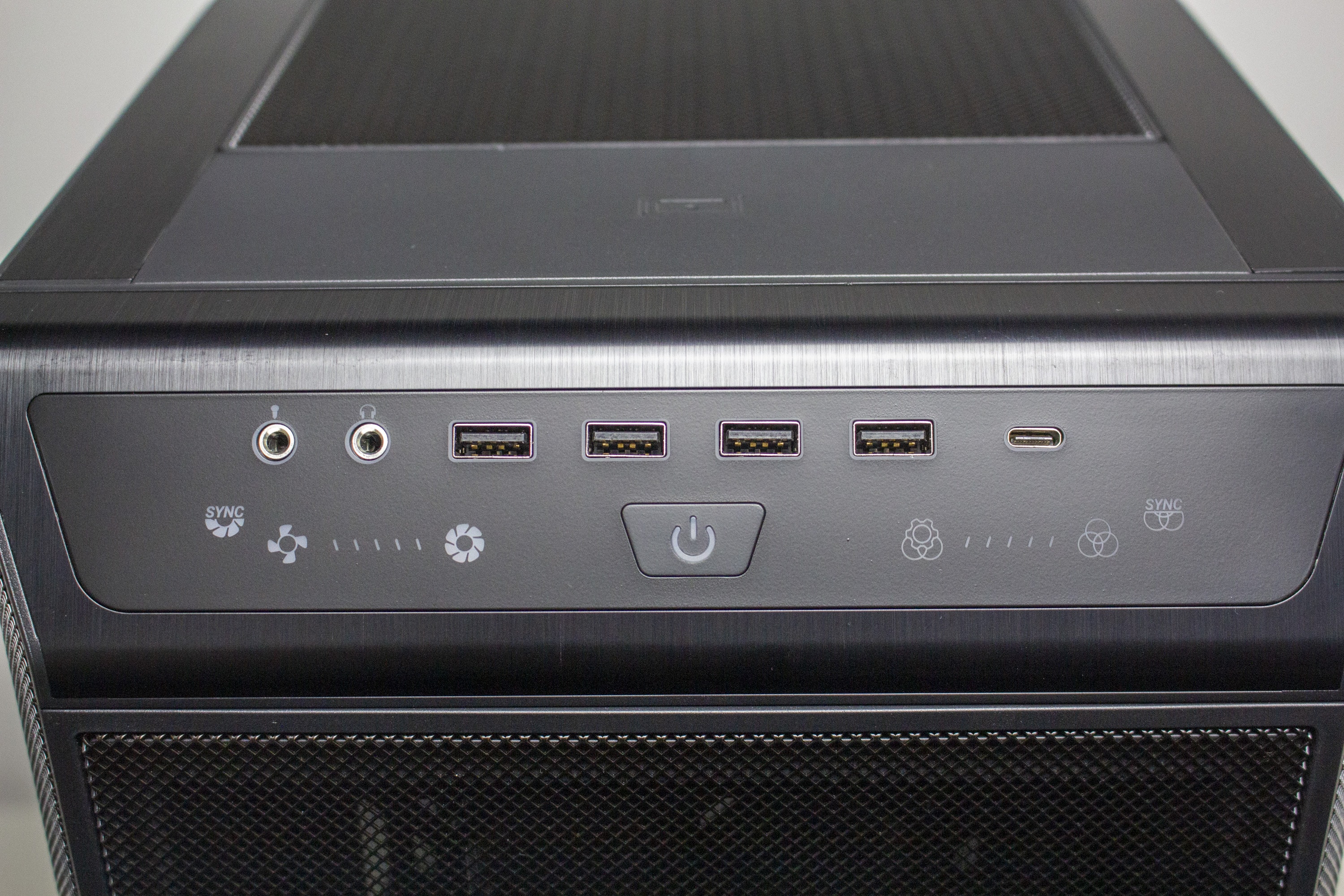 | Front-Anschlüsse | 1x USB-C 3.1 (10Gb/s, 20-Pin Key-A Header), 4x USB-A 3.0 (5Gb/s), 1x Kopfhörer, 1x Mikrofon |