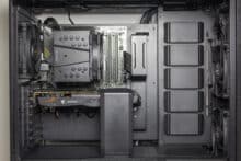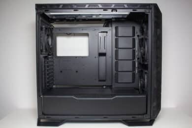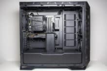 In Bezug auf Radiatoren passen in das Dark Base Pro 901 gleichzeitig maximal ein 420-mm-Radiator in der Front sowie ein 360-mm-Radiator im Deckel. Damit lässt sich eine äußerst potente Wasserkühlung realisieren. Der große Frontradiator passt jedoch nur, wenn kein 5,25″-Laufwerk verbaut wird.